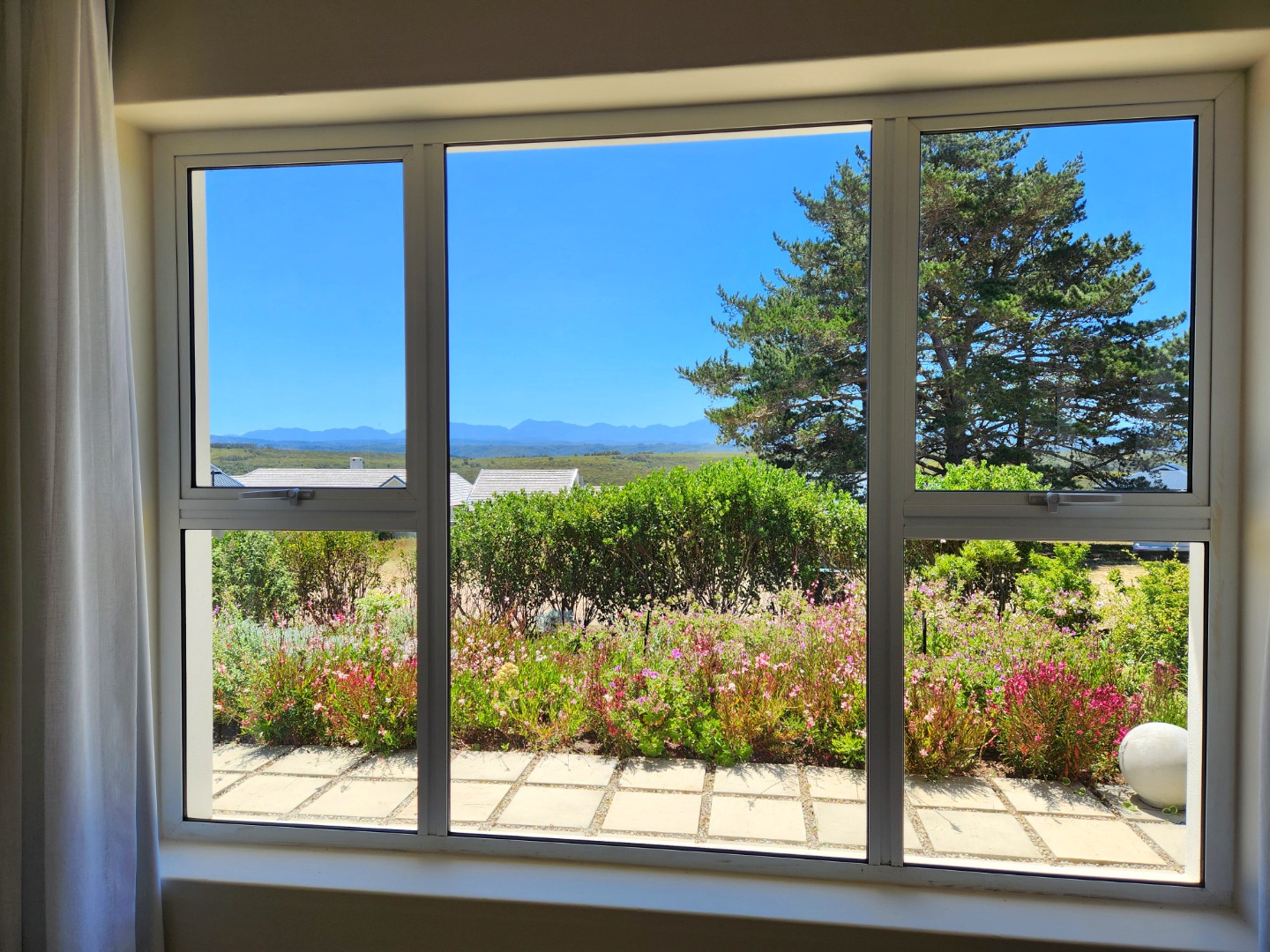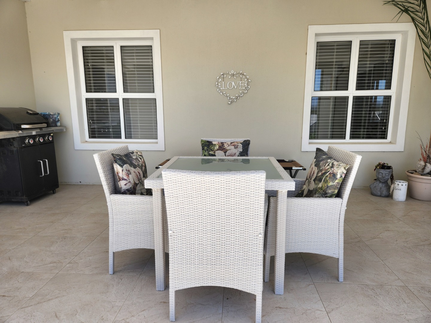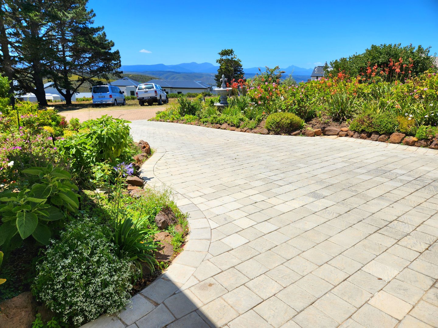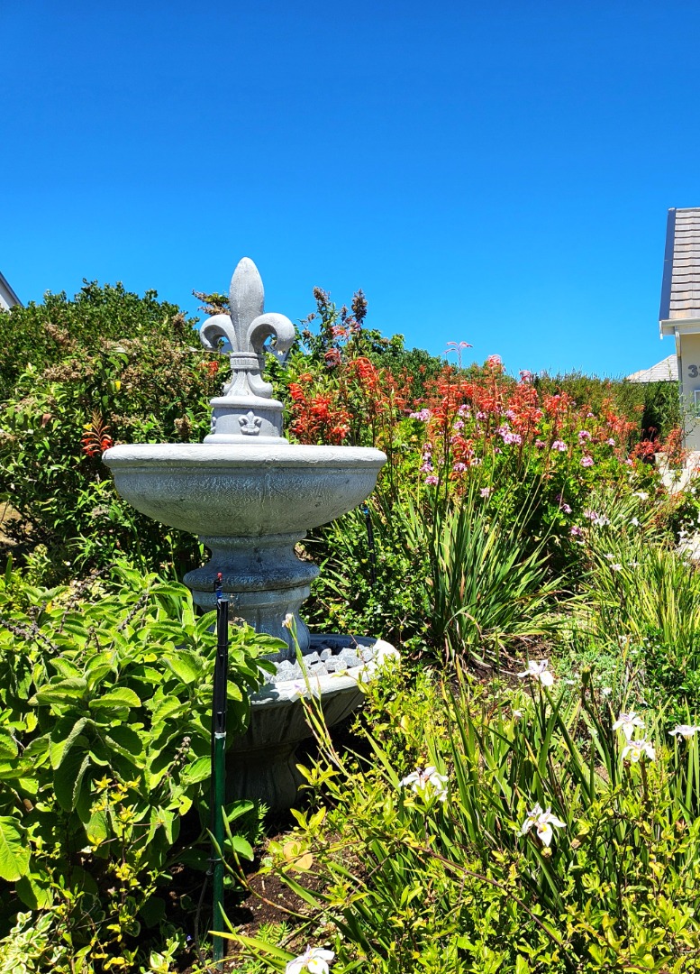 Bright and immaculate, north facing home on a corner property in a cul de sac in Barons View Estate. A well designed home, all on one level with open plan lounge, dining room, kitchen with gas stove, electric oven and extractor, granite finishes, separate laundry/scullery interleading to the double garage. 3 spacious bedrooms (carpeted), 2 bathrooms, main en suite. The living room and the master bedroom both lead out to a large covered patio, overlooking the pretty, colourful, irrigated garden. The mountain view is magnificent. The peace and tranquility is perfect. Homes of this quality and price seldom come up for sale in this prestigious estate.