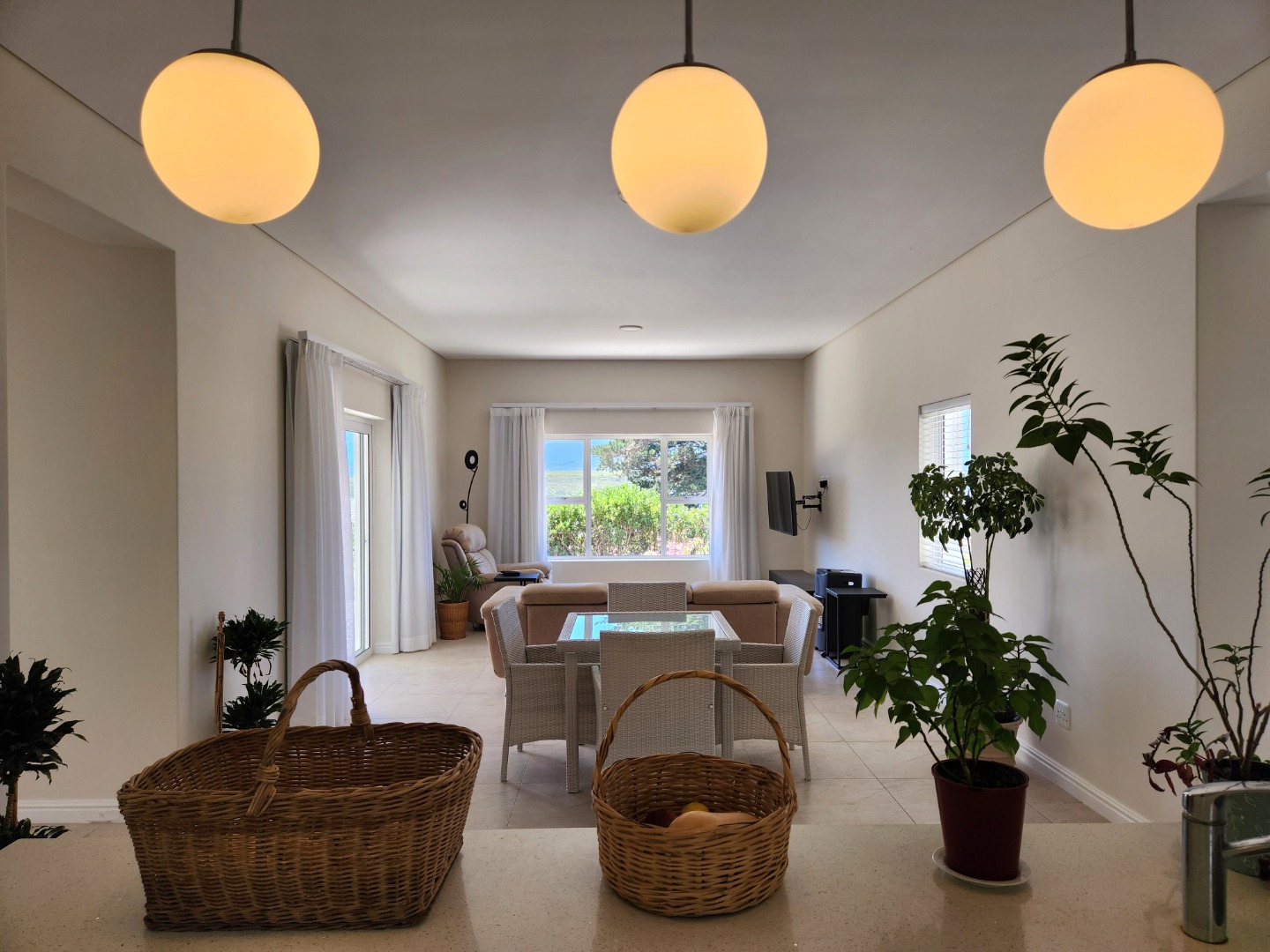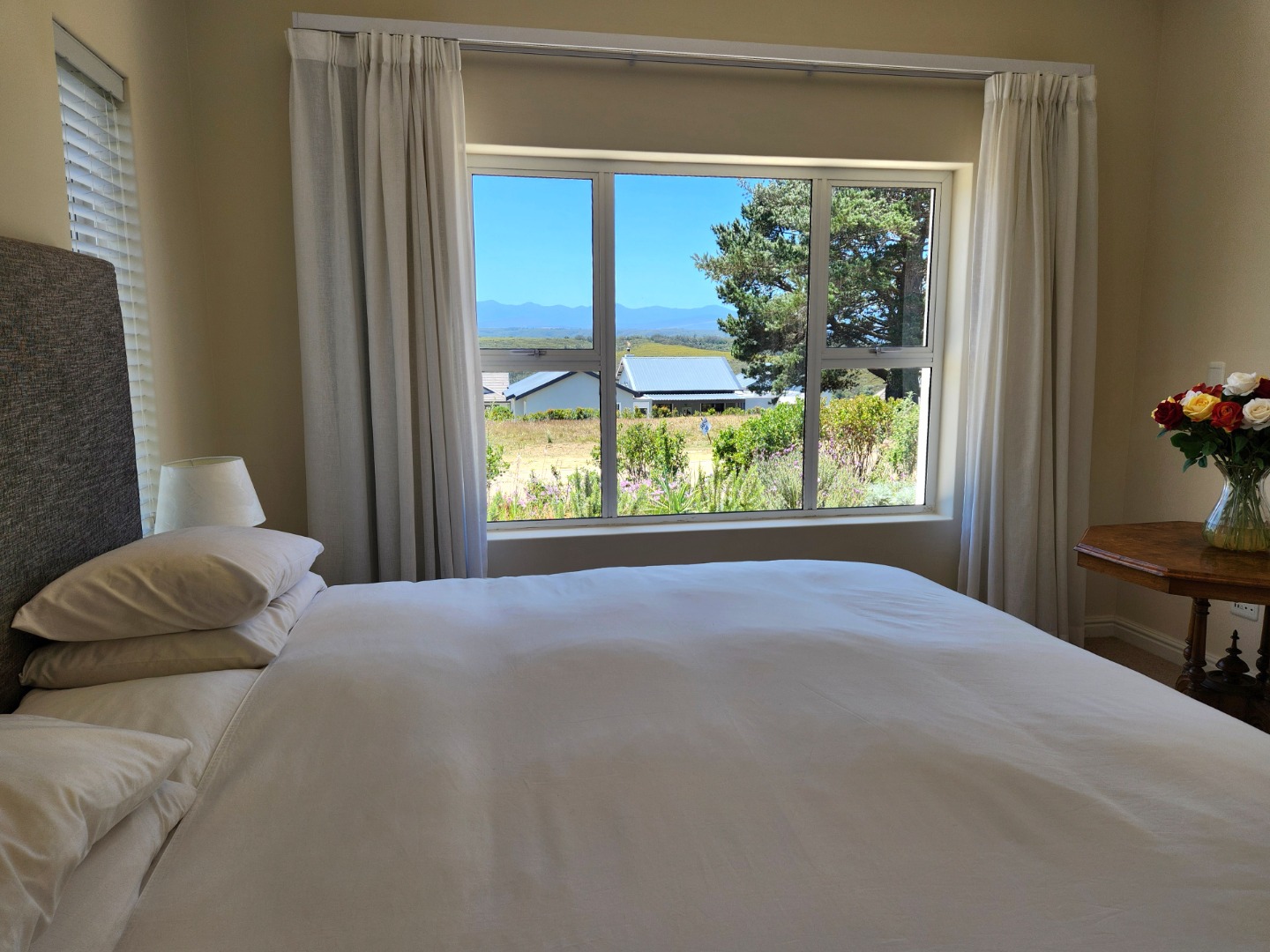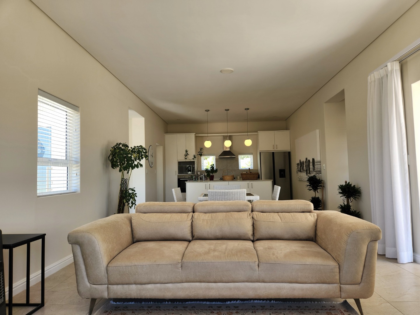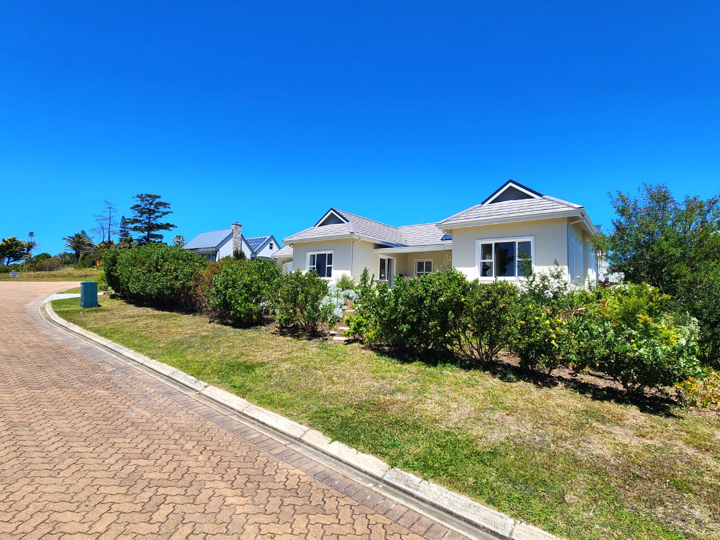 Bright and immaculate, north facing home on a corner property in a cul de sac in Barons View Estate. A well designed home, all on one level with open plan lounge, dining room, kitchen with gas stove, electric oven and extractor, granite finishes, separate laundry/scullery interleading to the double garage. 3 spacious bedrooms (carpeted), 2 bathrooms, main en suite. The living room and the master bedroom both lead out to a large covered patio, overlooking the pretty, colourful, irrigated garden. The mountain view is magnificent. The peace and tranquility is perfect. Homes of this quality and price seldom come up for sale in this prestigious estate.
