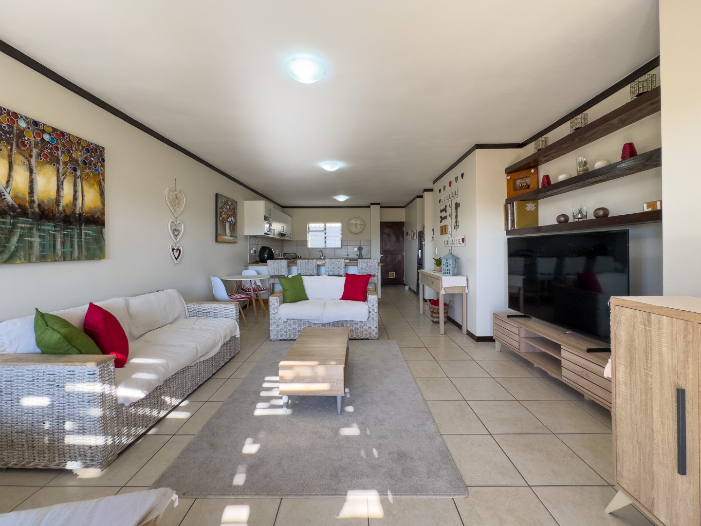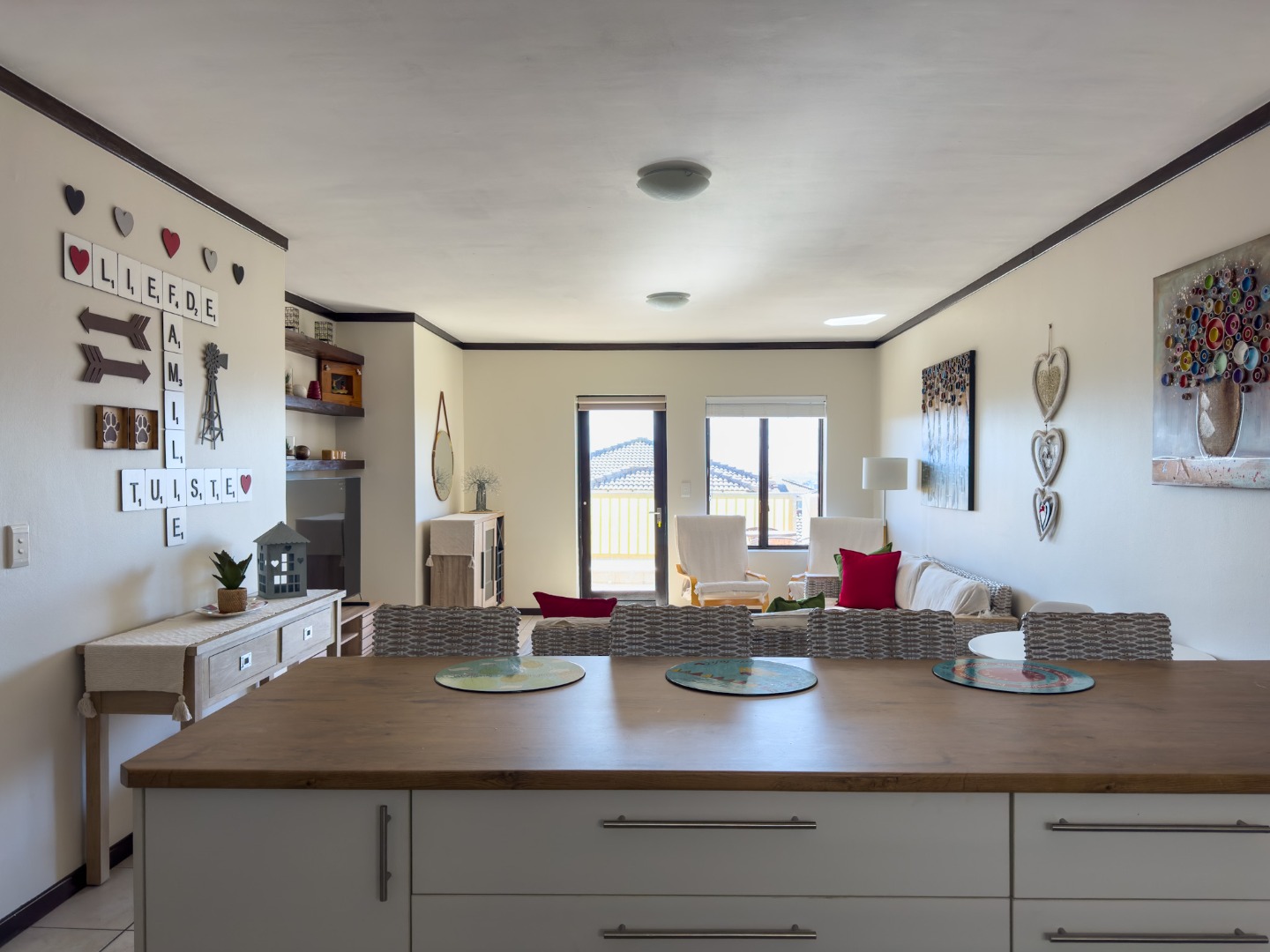 - Open-plan kitchen and lounge area leading to a covered patio