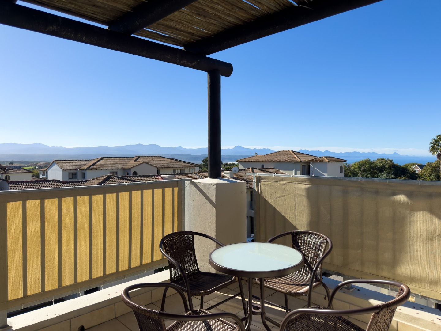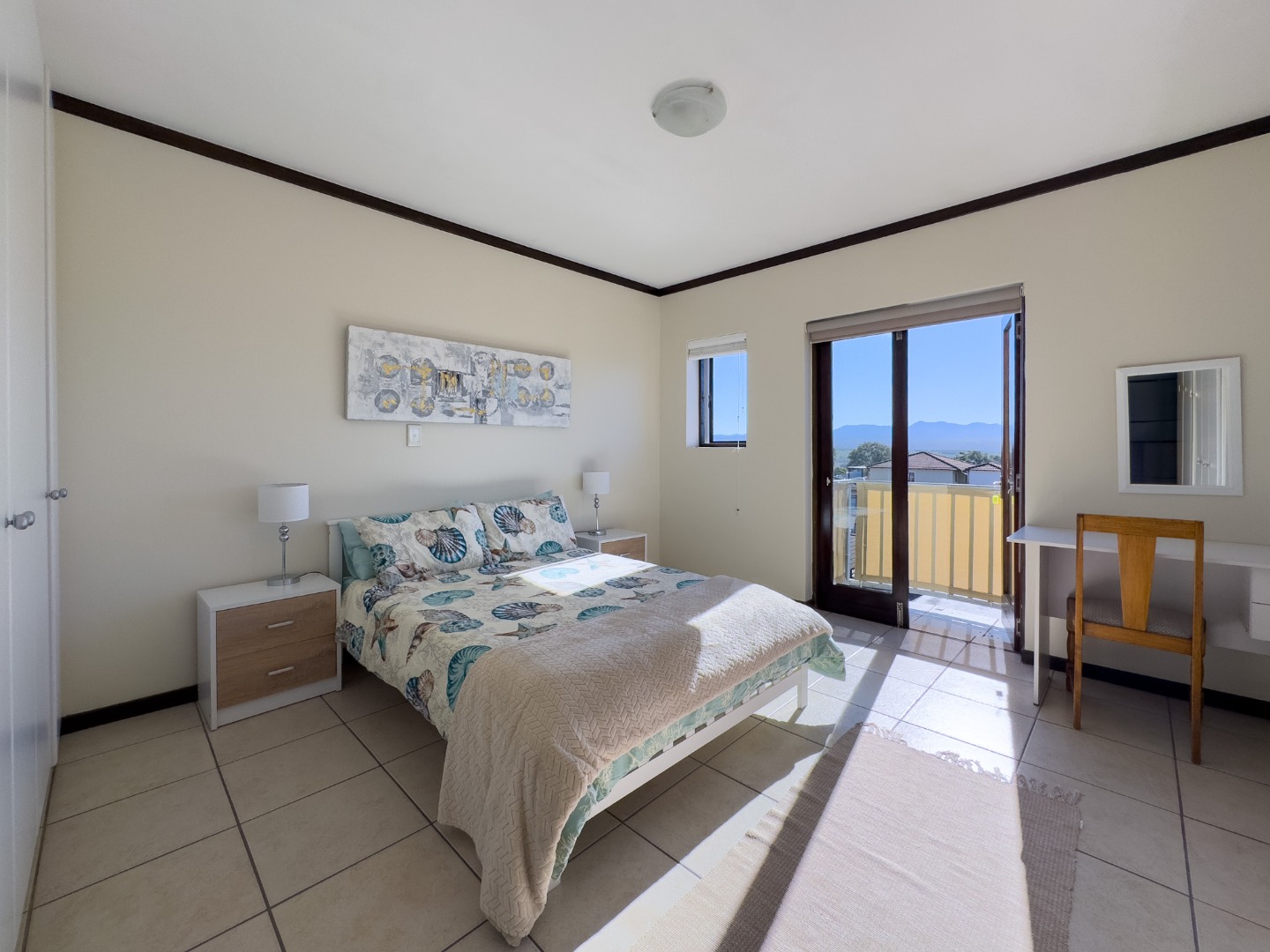 Well-maintained 2-bedroom, 2-bathroom apartment in a secure complex, offering lovely sea and mountain views across Plettenberg Bay. The north-facing orientation provides good natural light throughout the day.