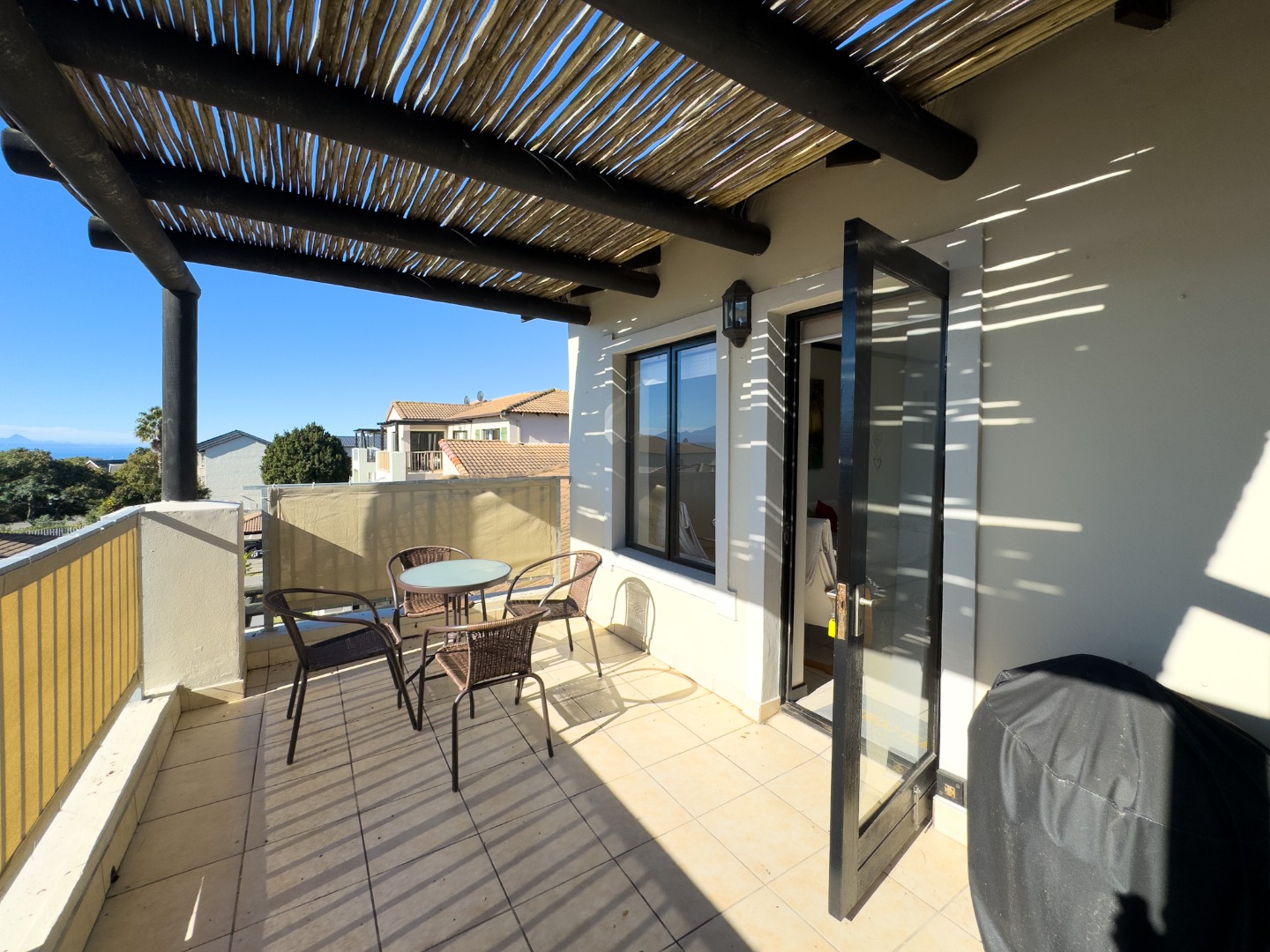 The apartment is situated in a well-managed sectional title complex with manicured gardens. The elevated position offers privacy while maintaining easy access to Plettenberg Bay's beaches and amenities. The north-facing aspect ensures the living areas receive good light, while the patio provides a pleasant outdoor space to enjoy the views.