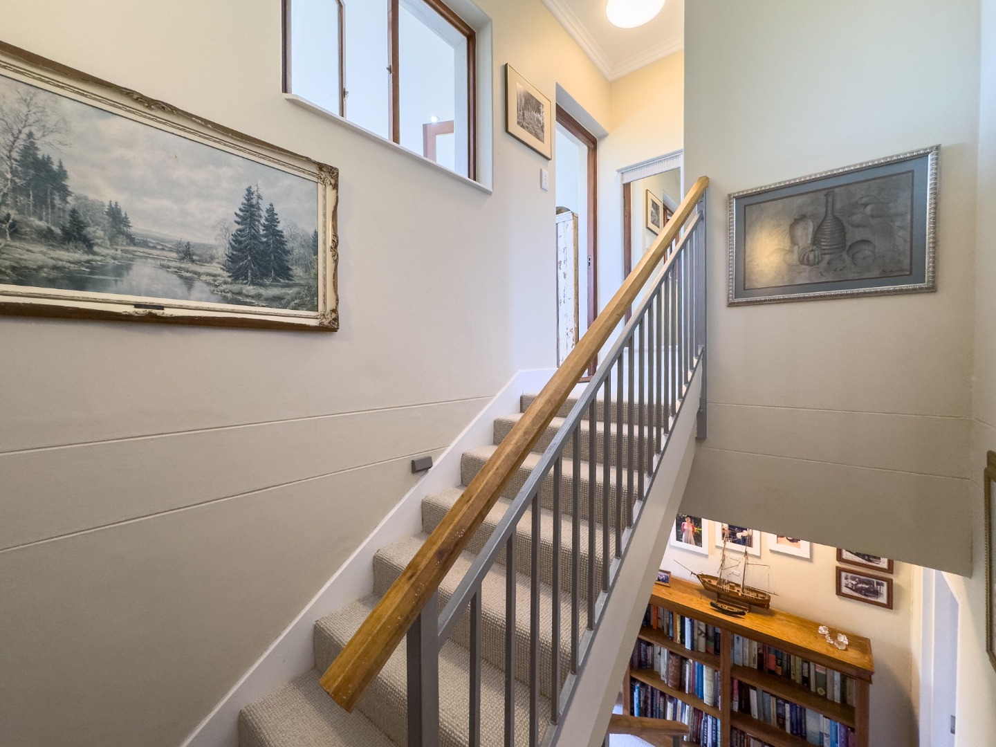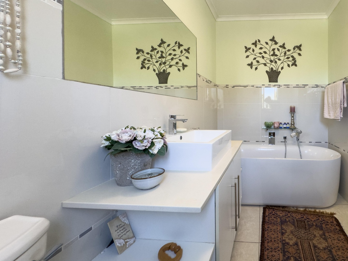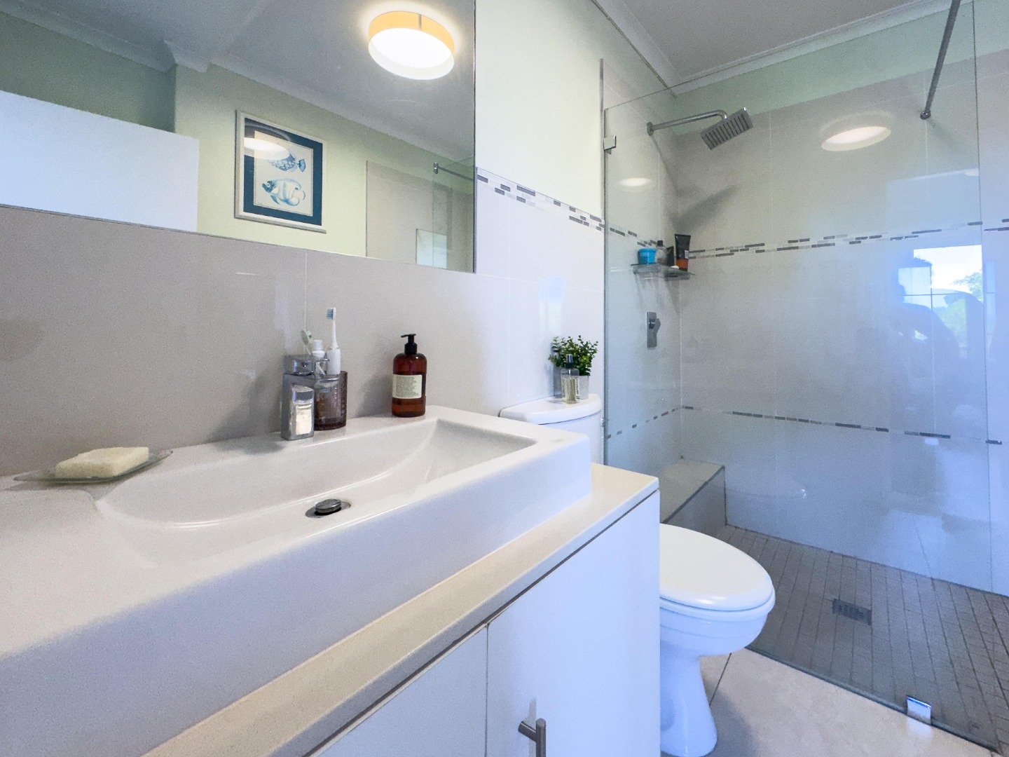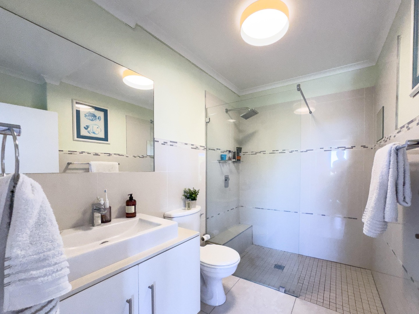 This residence comprises three comfortable bedrooms, each complemented by its own en-suite bathroom, ensuring privacy and convenience. An additional guest toilet and a dedicated study provide further functionality. The property extends its living spaces outdoors with multiple patios, offering various settings for relaxation and entertainment. Enjoy al fresco dining under a retractable shade sail, unwind by a fire pit in the lush garden, or take in the scenic and sea views from the balcony.