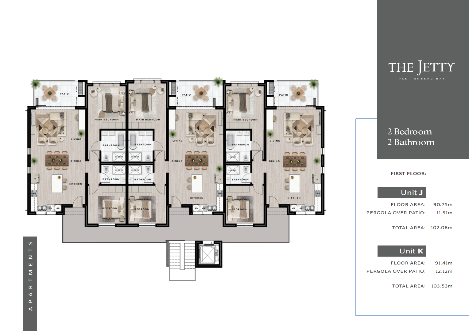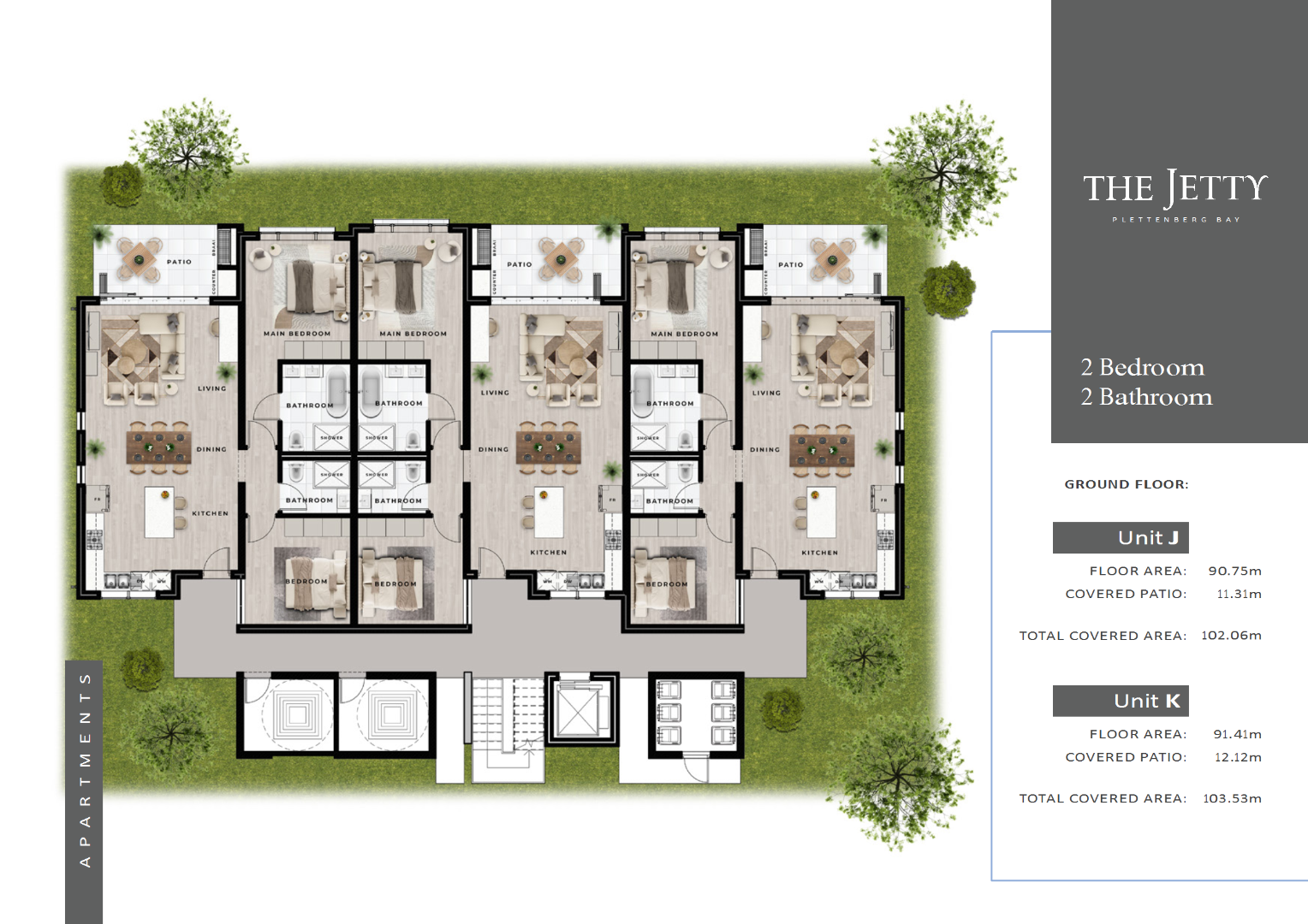 Discover an exquisite coastal sanctuary within The Jetty, Plettenberg Bay. This sophisticated 2-bedroom, 2-bathroom residence, spanning 102 sqm, offers an unrivalled lifestyle amidst breathtaking panoramic views of the estuary and distant ocean, framed by lush natural landscapes.