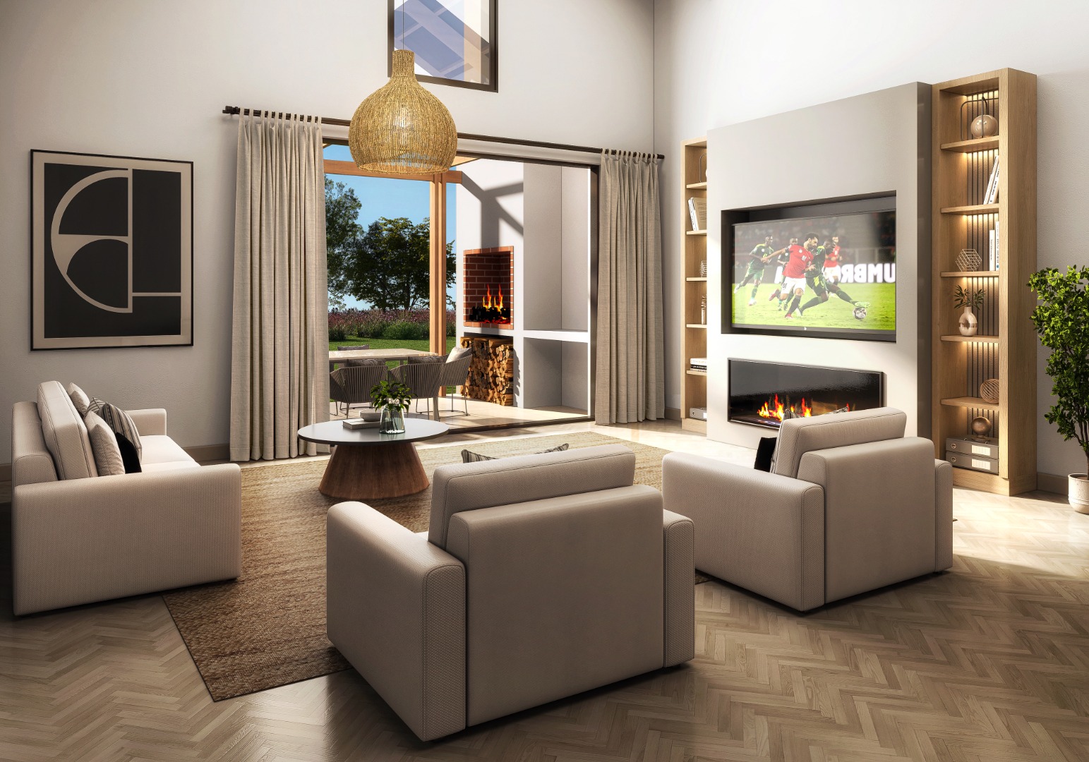 Step inside to discover a meticulously designed interior spanning 194 sqm, where an open-plan layout seamlessly connects the sophisticated kitchen, elegant dining room, and inviting lounge. Special doors and lighting fixtures elevate the ambiance, while a charming fireplace adds warmth and character, creating an ideal setting for both intimate gatherings and grand entertaining.