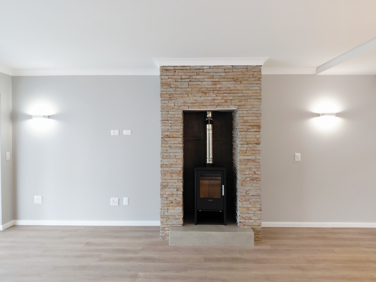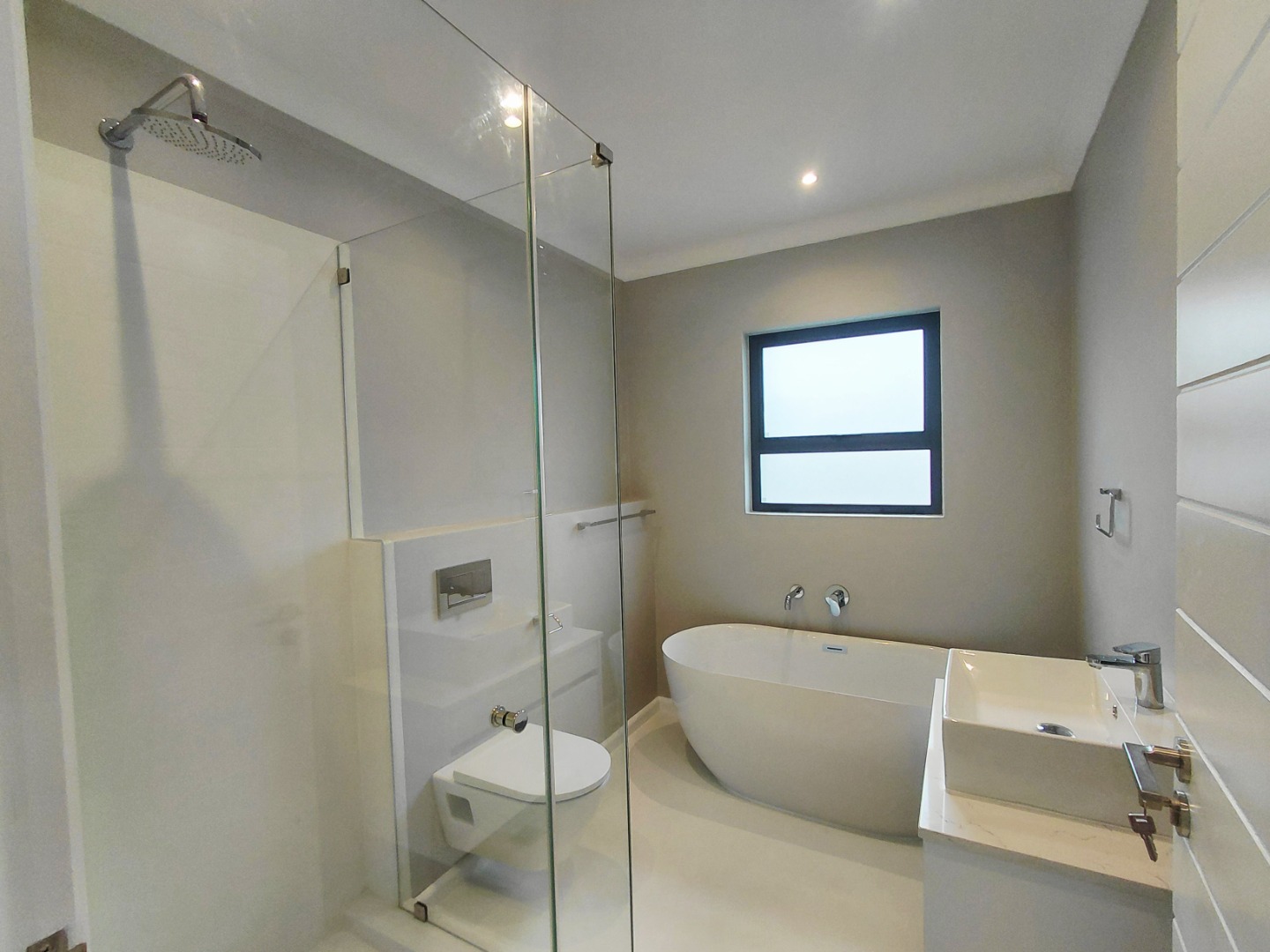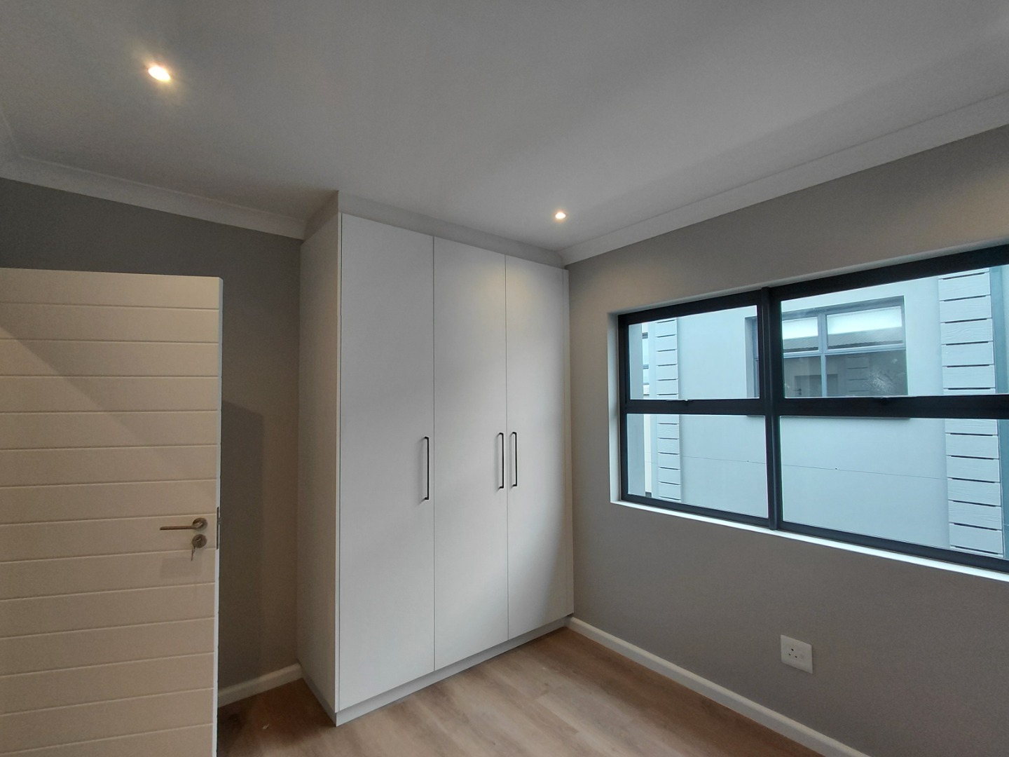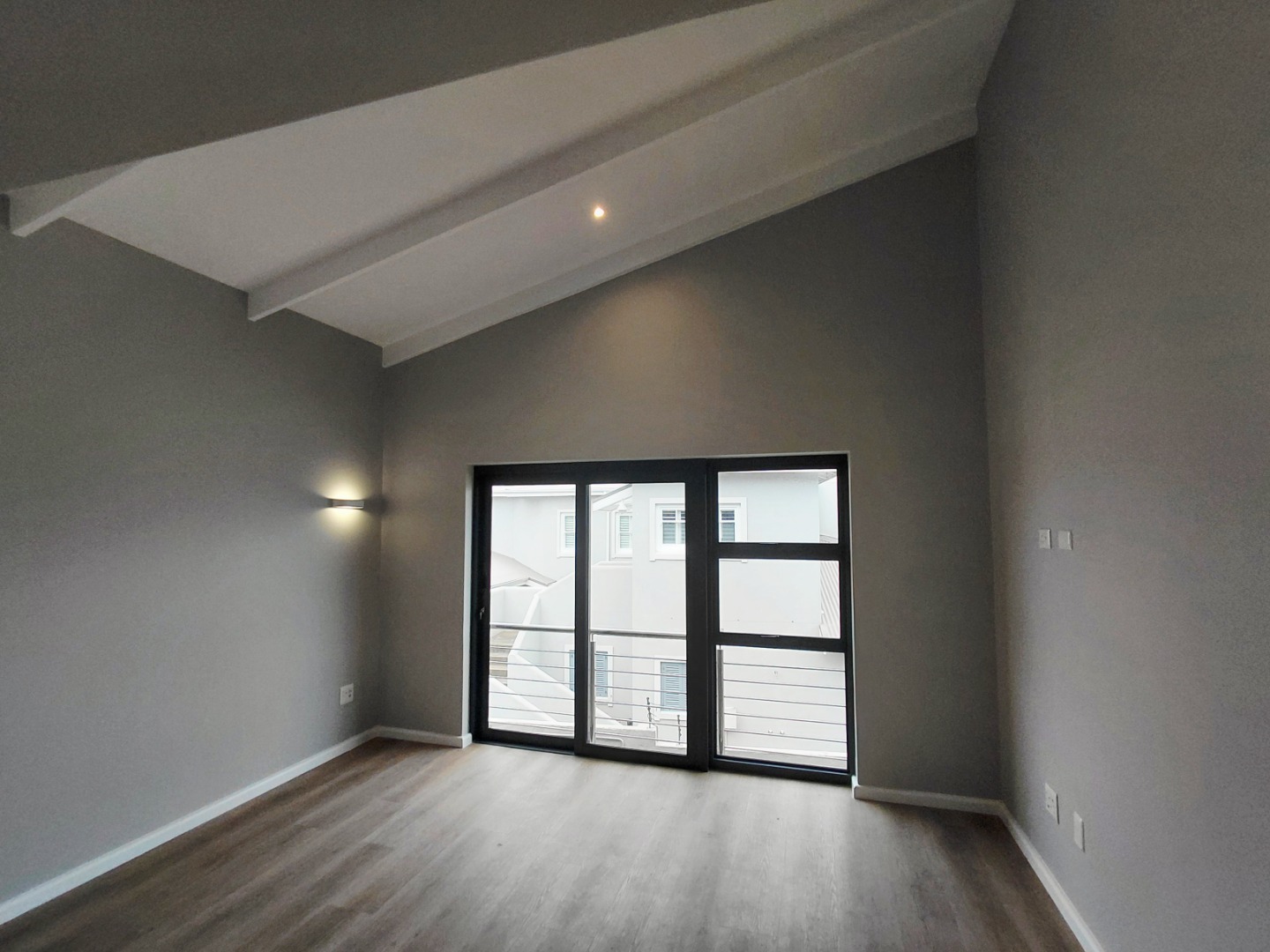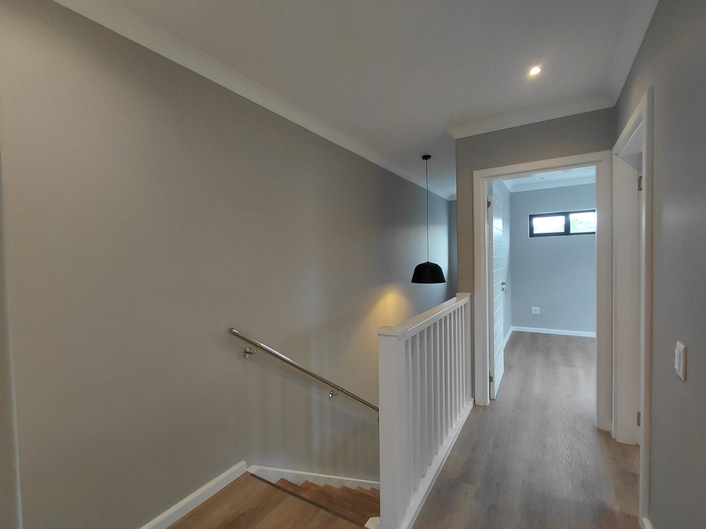 Discover modern living in this contemporary 3-bedroom, 2-bathroom home situated within a secure gated community in Plettenberg Bay Central. The residence boasts an inviting open-plan layout, seamlessly connecting the living, dining, and kitchen areas. Modern finishes, including elegant wood-look flooring and a neutral colour palette, create a sophisticated atmosphere. The sleek kitchen features an integrated gas hob on a stylish island, while large glass sliding doors flood the space with natural light and provide access to both a private courtyard and a rear garden. A striking stone-clad feature wall with a fireplace adds character and warmth, complemented by a contemporary open-tread staircase.
