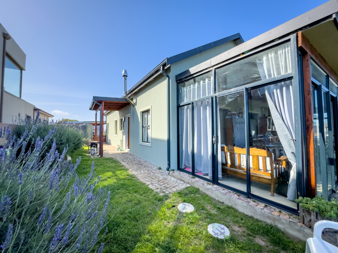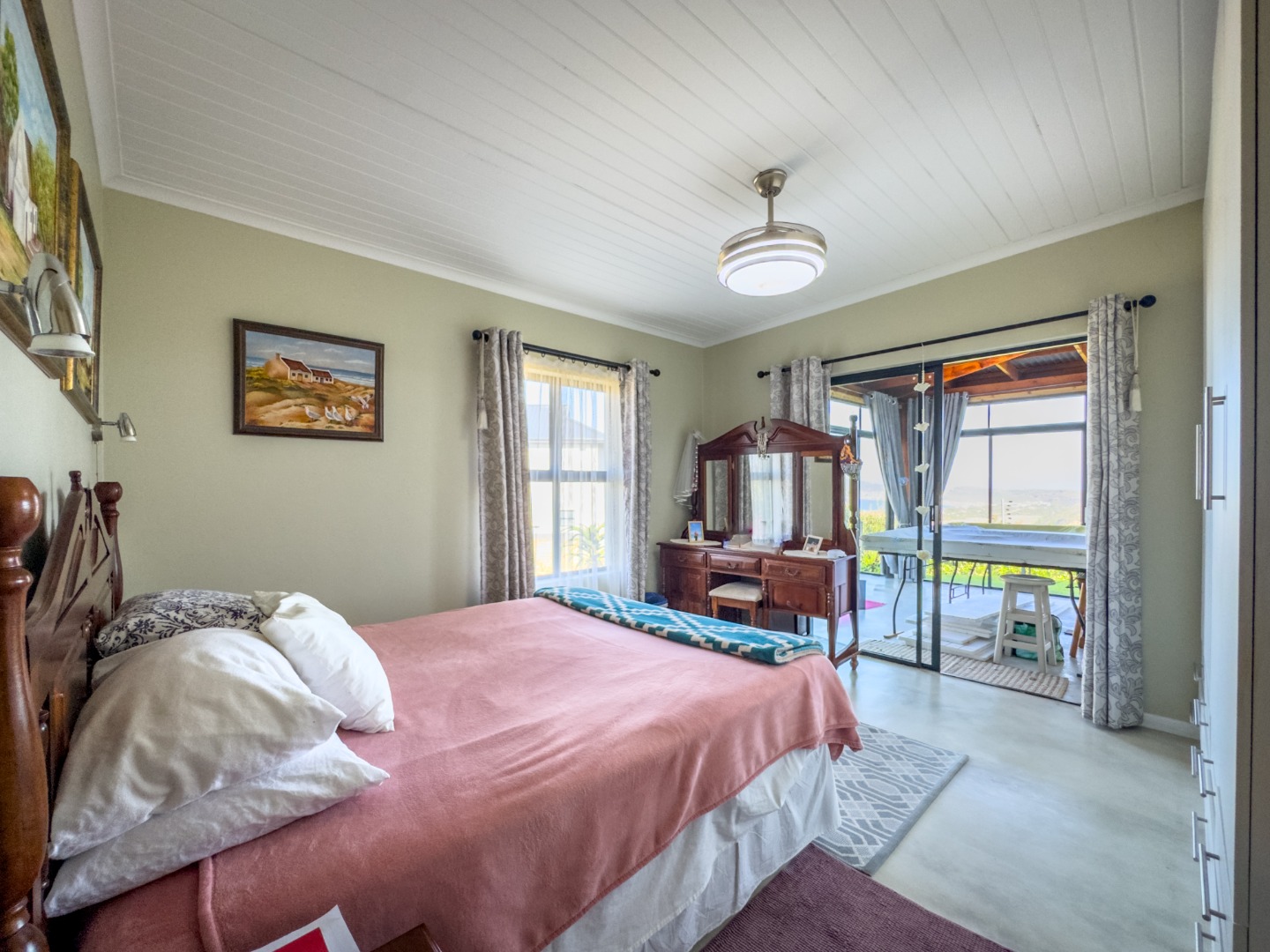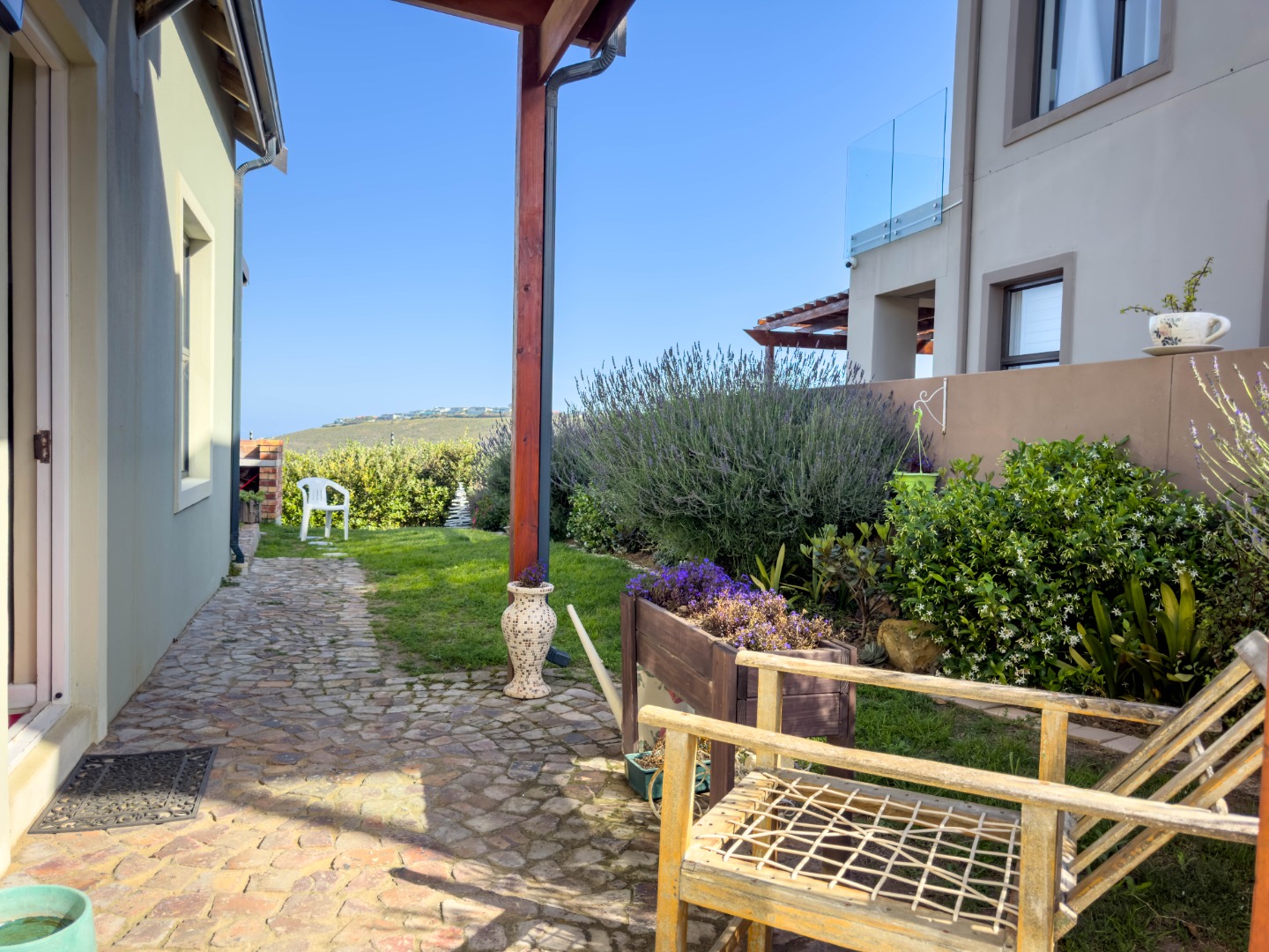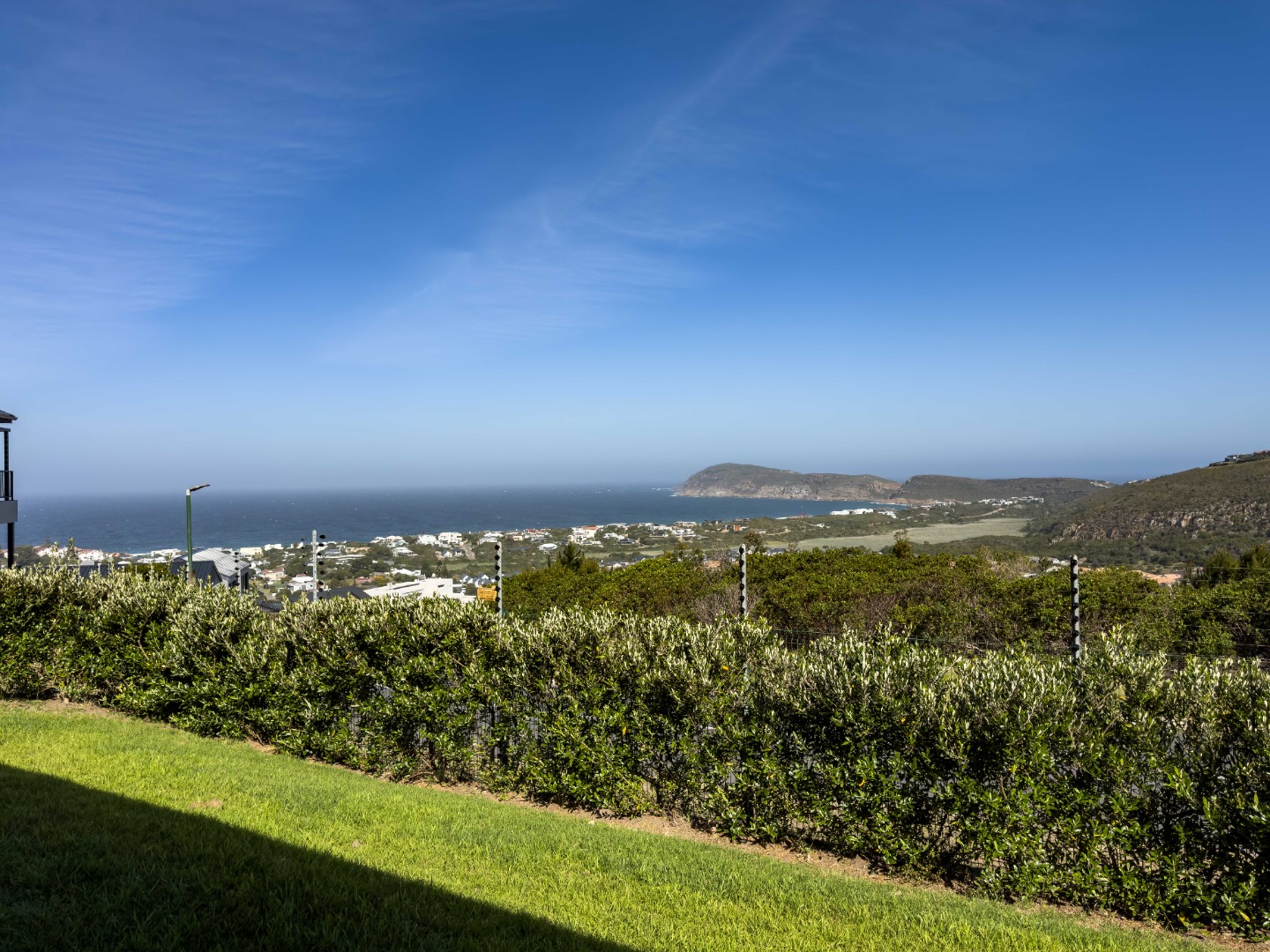 Attractive, single storey home, well positioned and elevated, within a small security estate, with magnificent sea and Robberg views. The home consists of an open plan lounge, dining room with a lovely coal stove, kitchen, enclosed patio/sunroom, built-in braai, 2 bedrooms, 2 bathrooms, double garage, carport. Extras include 3 water tanks, 5 kw invertor, fiber availability, solar. The garden is partially enclosed to accommodate pets.