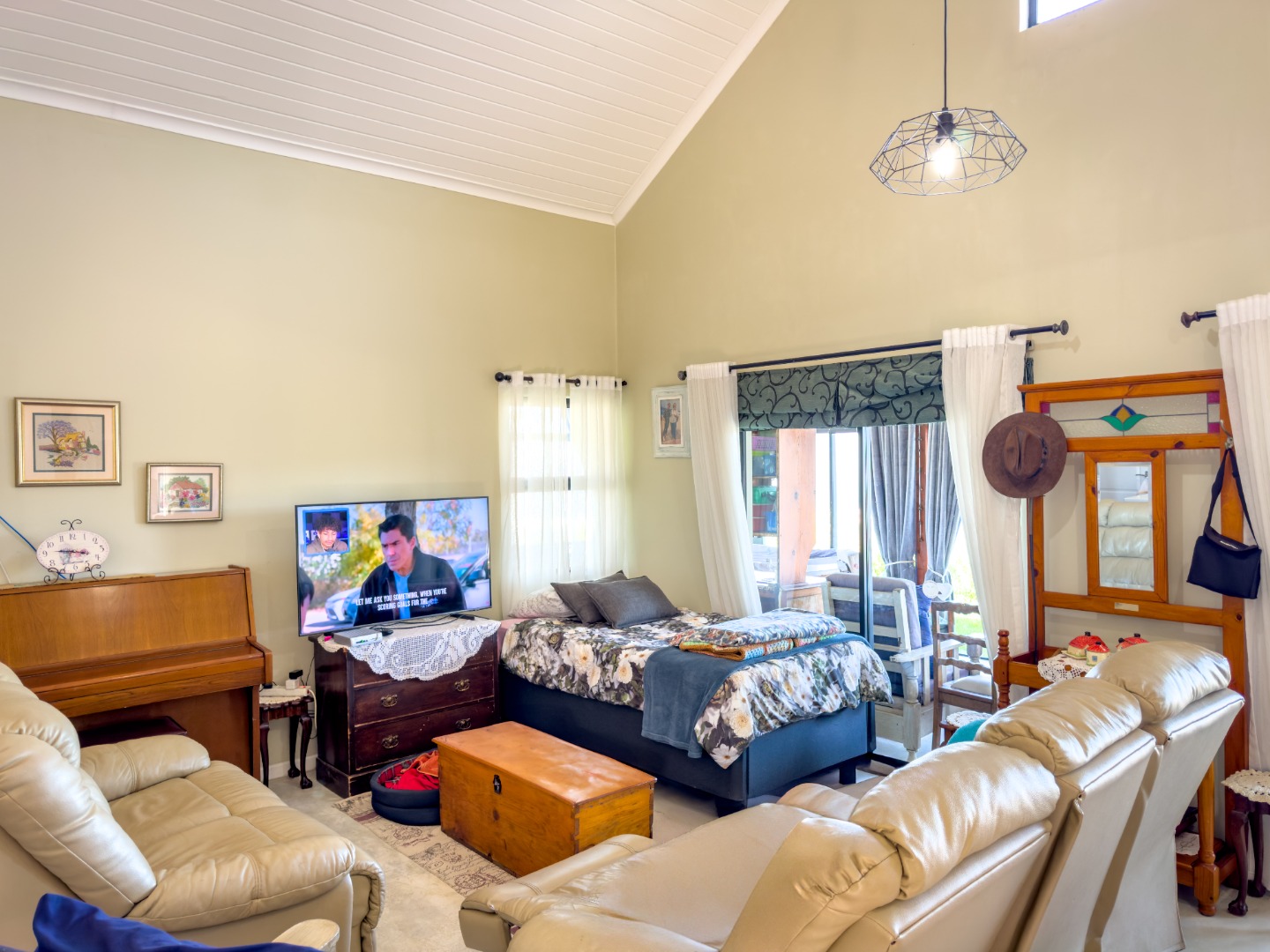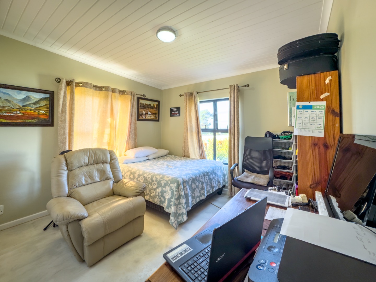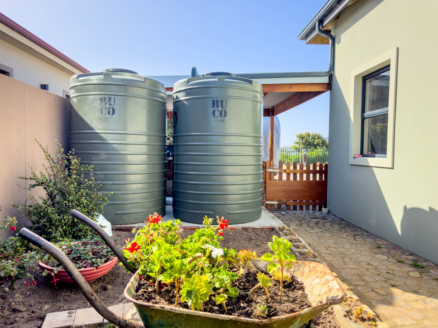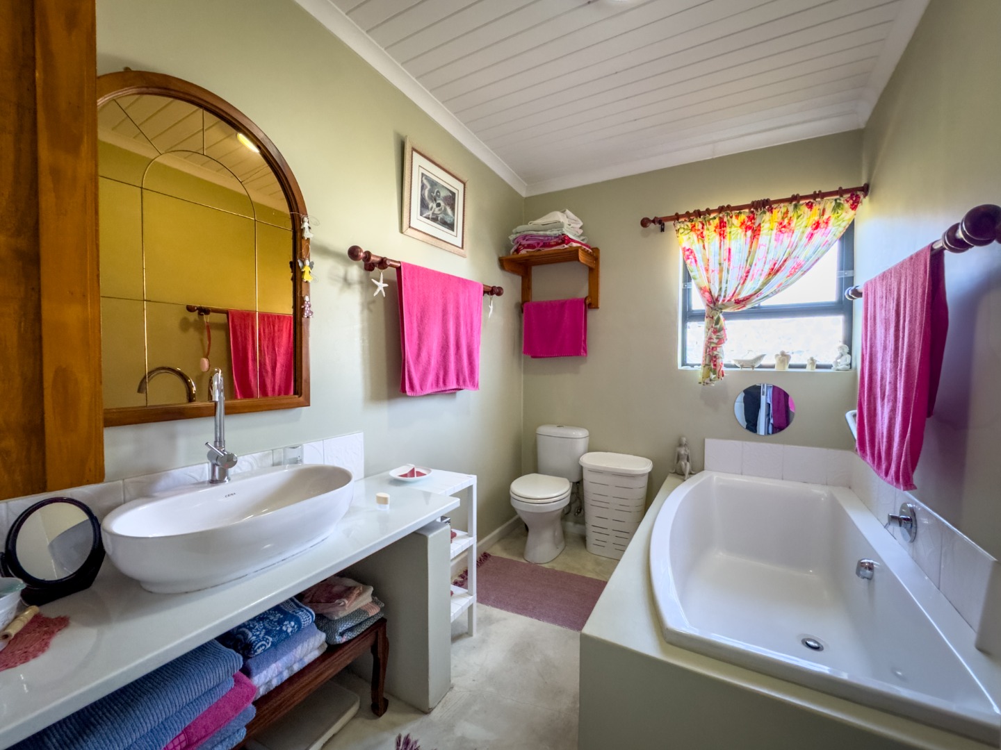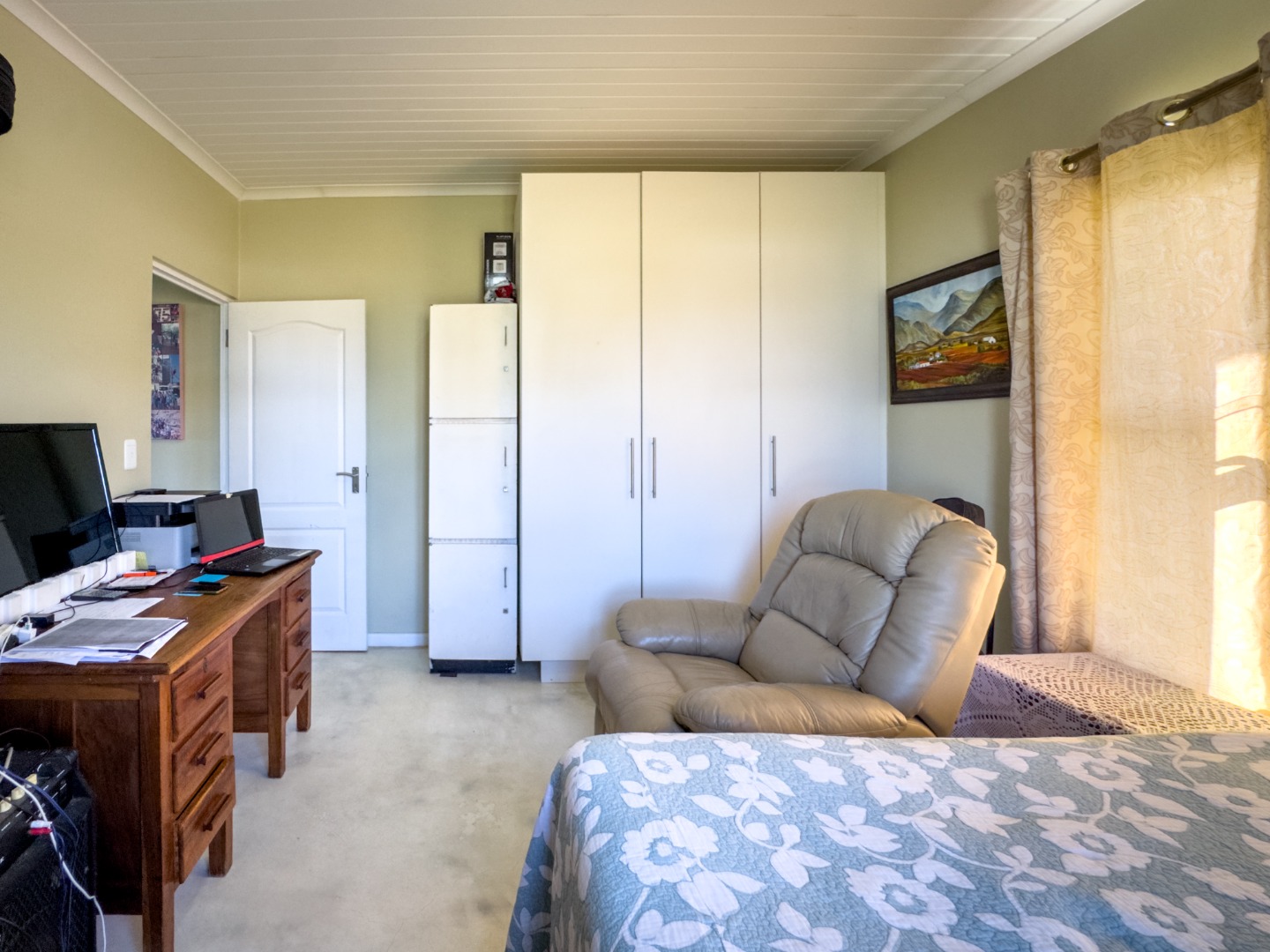 Attractive, single storey home, well positioned and elevated, within a small security estate, with magnificent sea and Robberg views. The home consists of an open plan lounge, dining room with a lovely coal stove, kitchen, enclosed patio/sunroom, built-in braai, 2 bedrooms, 2 bathrooms, double garage, carport. Extras include 3 water tanks, 5 kw invertor, fiber availability, solar. The garden is partially enclosed to accommodate pets.