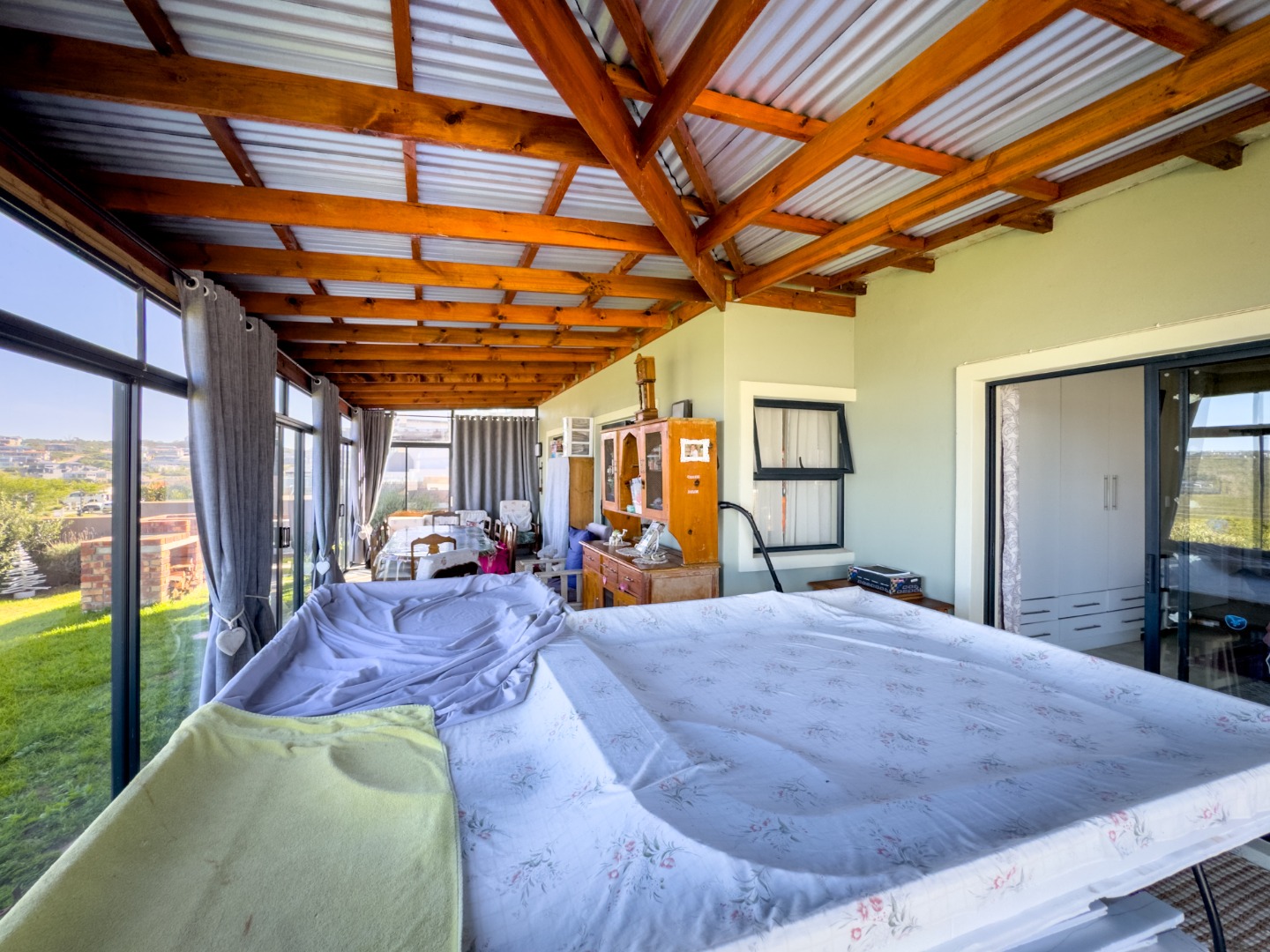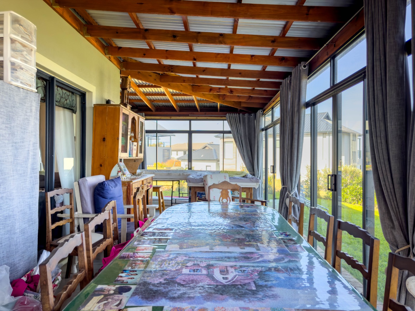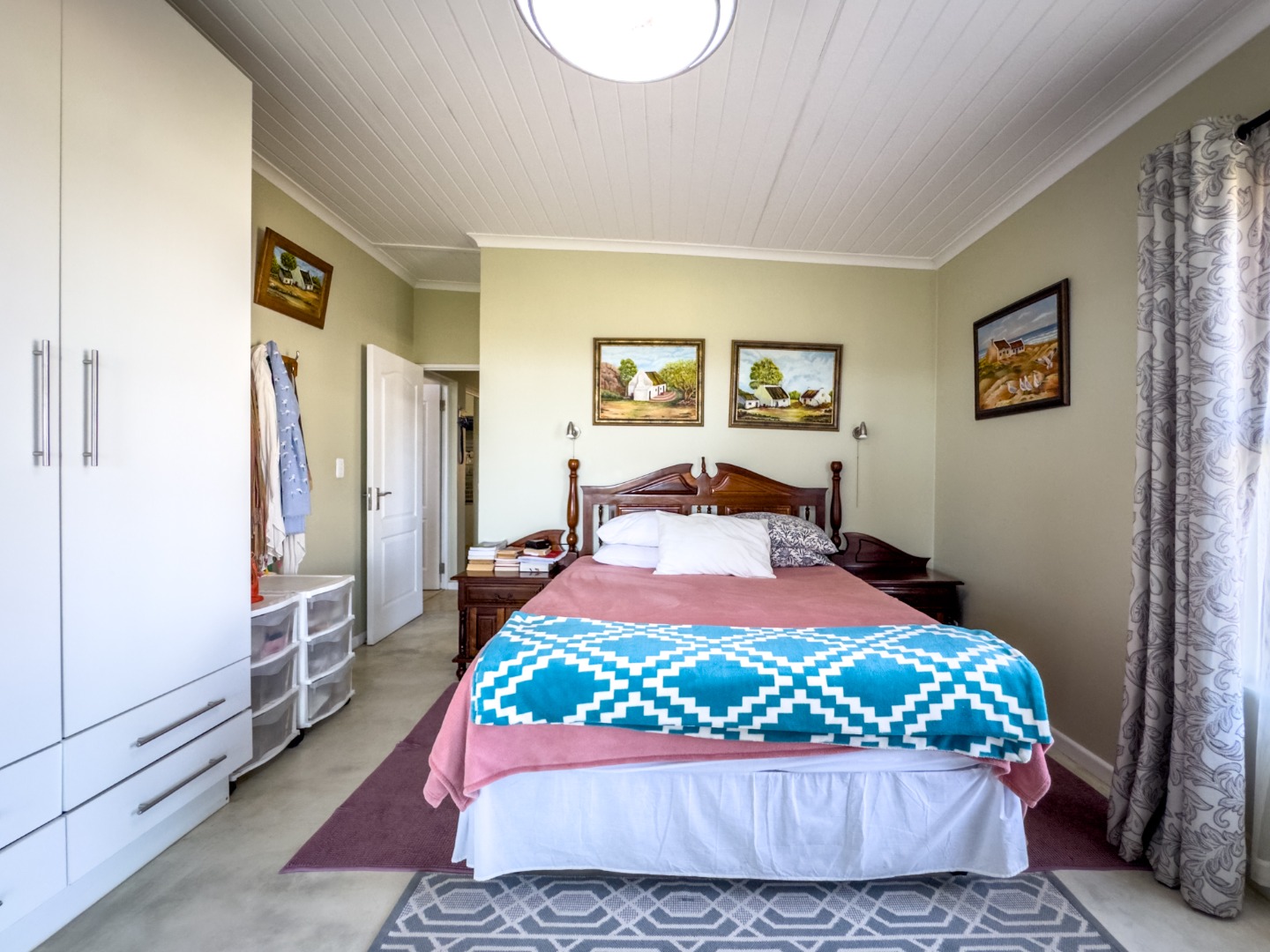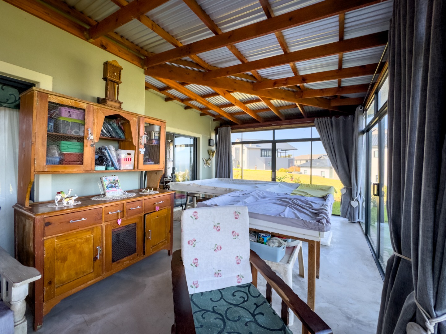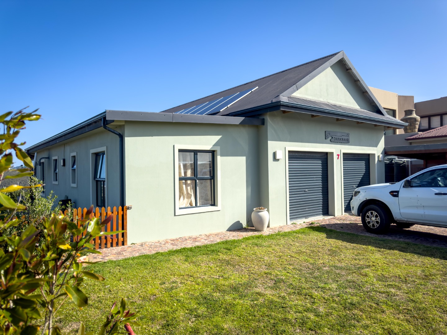 Attractive, single storey home, well positioned and elevated, within a small security estate, with magnificent sea and Robberg views. The home consists of an open plan lounge, dining room with a lovely coal stove, kitchen, enclosed patio/sunroom, built-in braai, 2 bedrooms, 2 bathrooms, double garage, carport. Extras include 3 water tanks, 5 kw invertor, fiber availability, solar. The garden is partially enclosed to accommodate pets.