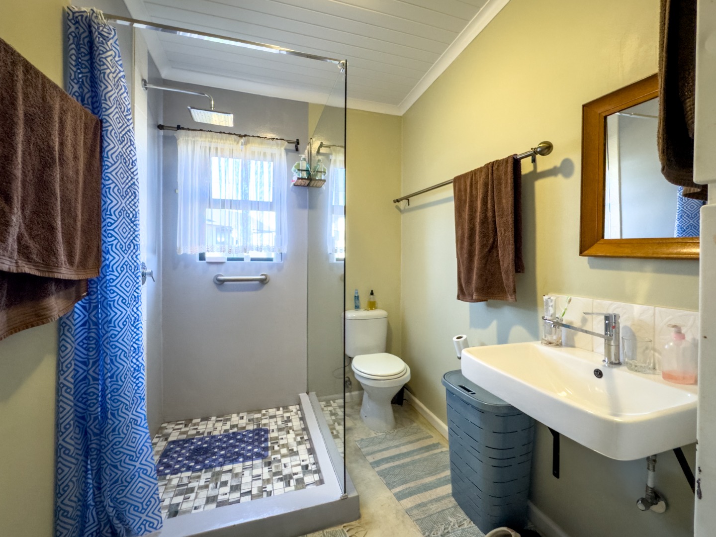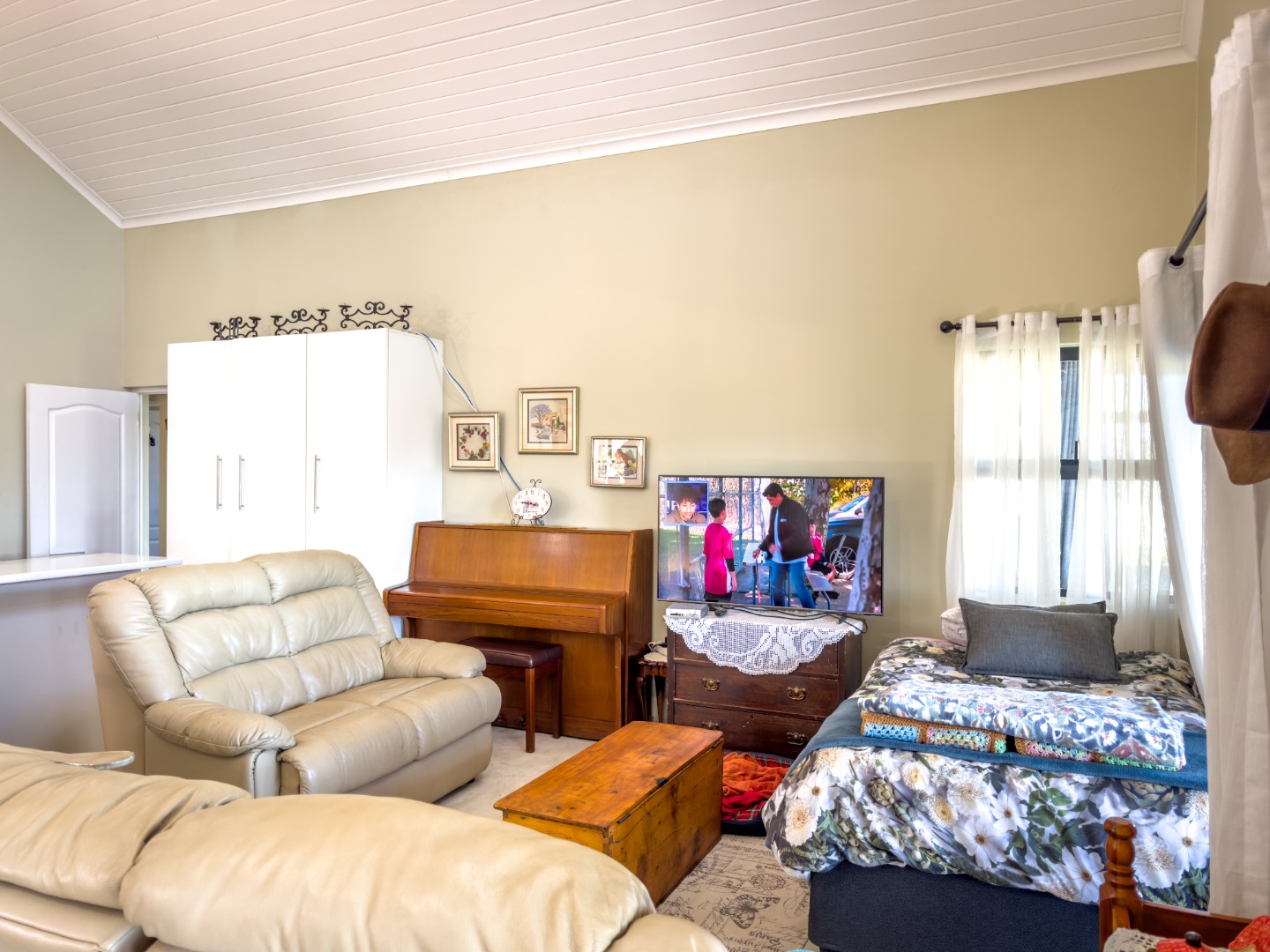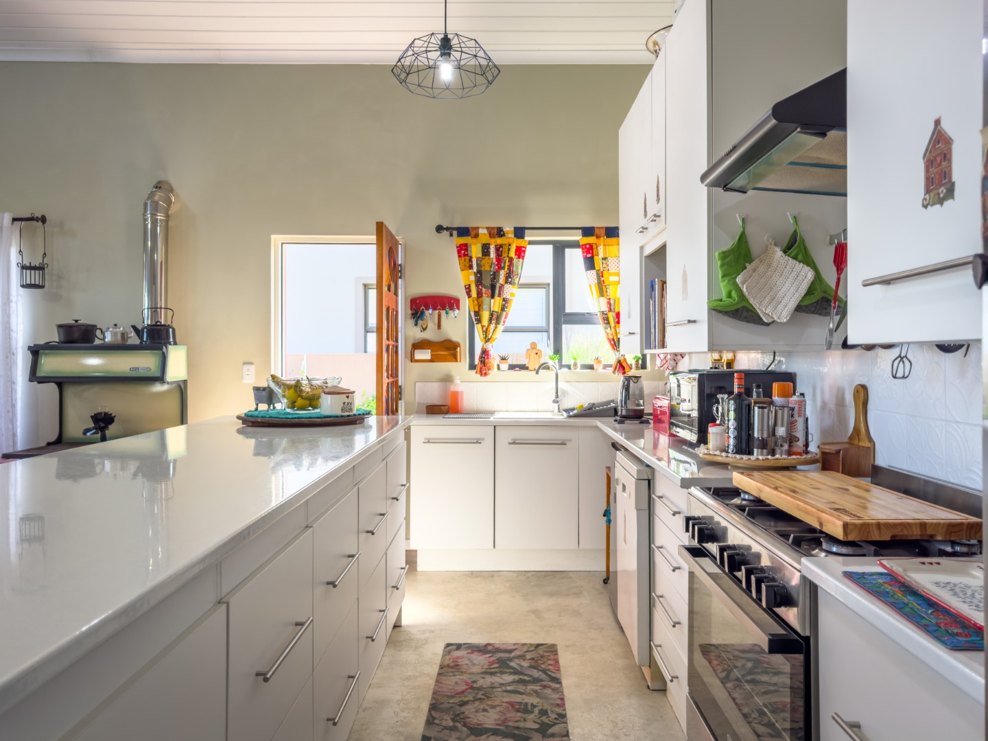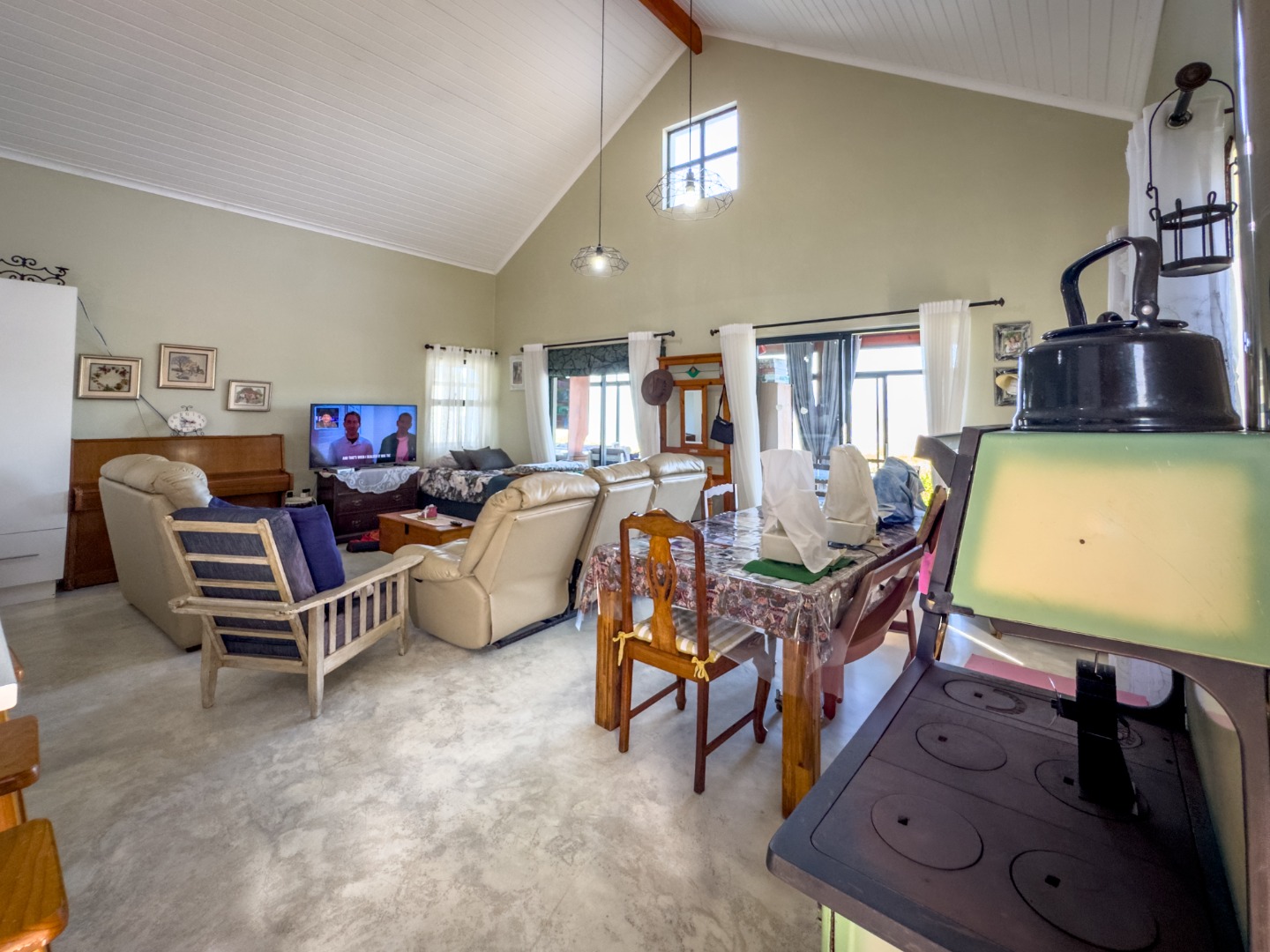 Attractive, single storey home, well positioned and elevated, within a small security estate, with magnificent sea and Robberg views. The home consists of an open plan lounge, dining room with a lovely coal stove, kitchen, enclosed patio/sunroom, built-in braai, 2 bedrooms, 2 bathrooms, double garage, carport. Extras include 3 water tanks, 5 kw invertor, fiber availability, solar. The garden is partially enclosed to accommodate pets.