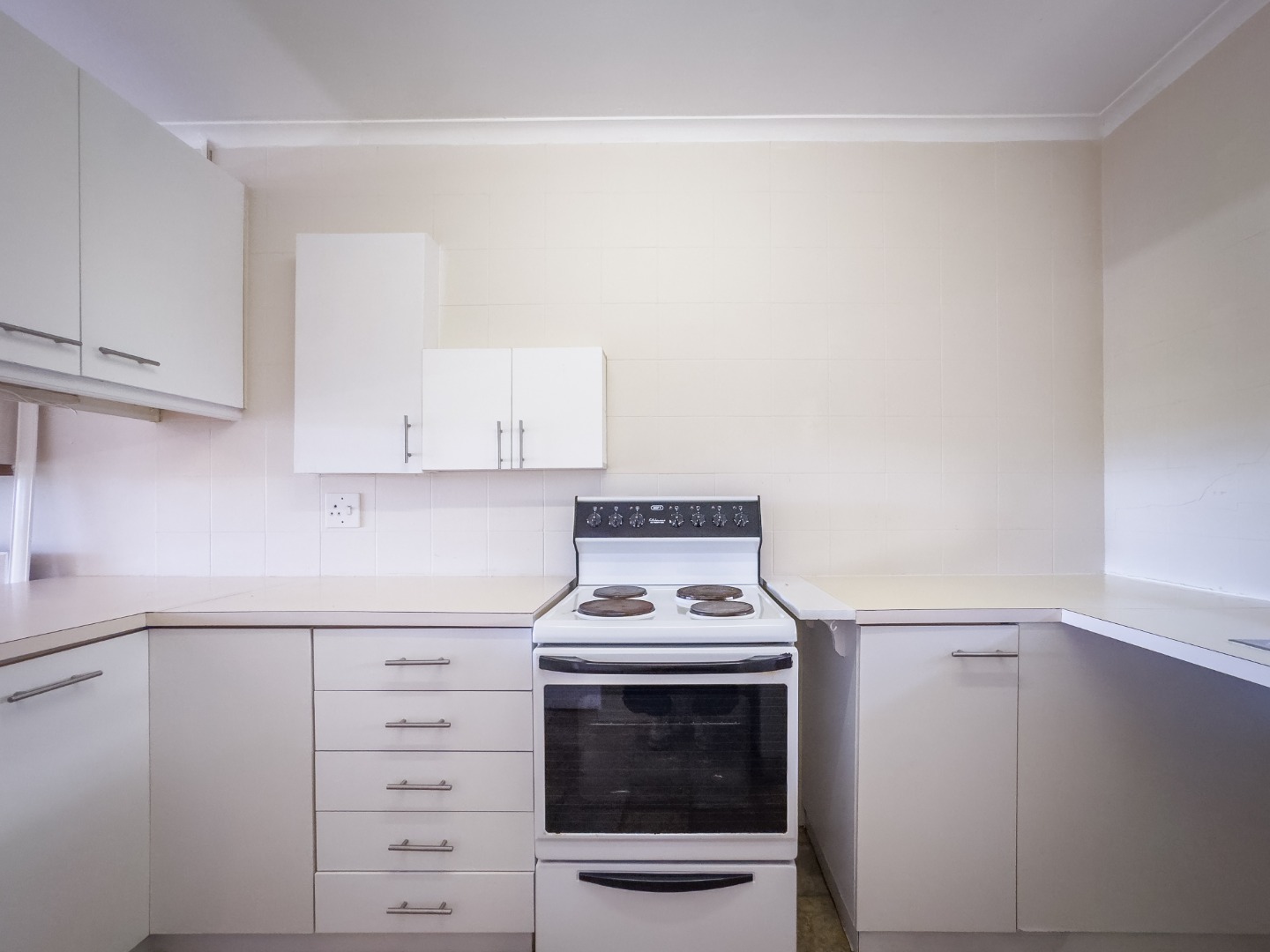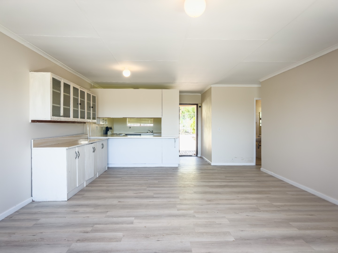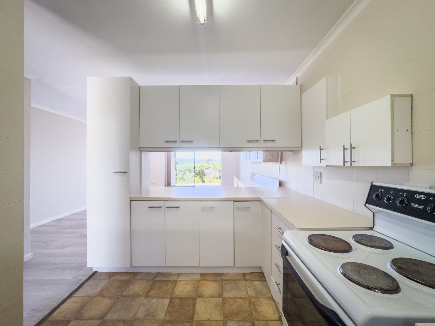 Open plan, kitchen, electric stove, plenty cupboards, doors open to a courtyard