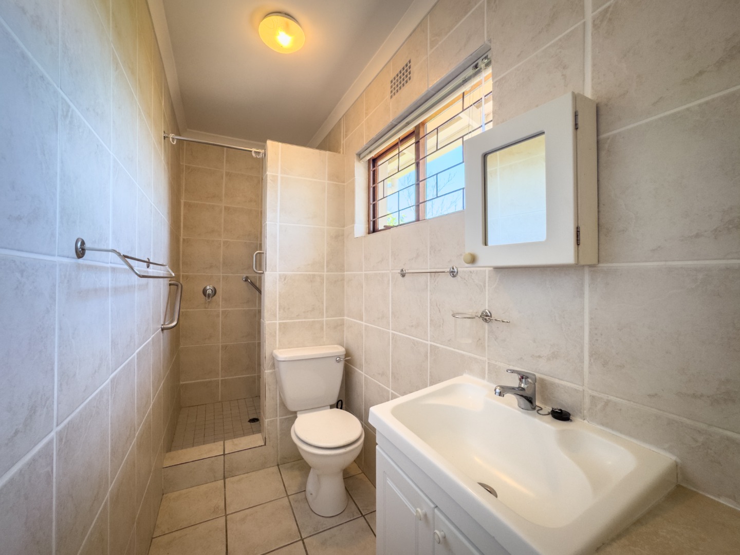 1 x Main bedroom with an en-suite bathroom with shower, toilet and basin.