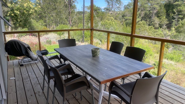 Furnished, spacious, 2-bedroom 2 en-suite bathroom home with a study (can be single 3rd bedroom) situated in the Harkerville area on a tranquil farm setting overlooking the forest.