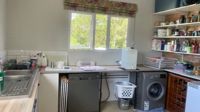 Large, country style, bright and airy, open plan kitchen, very well equipped, 4 plate gas hob, electric oven, microwave, air fryer, double sink, scullery area with washing machine and dishwasher, chest freezer, fridge/freezer.