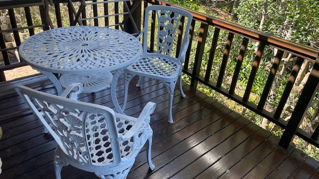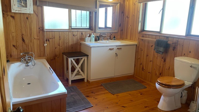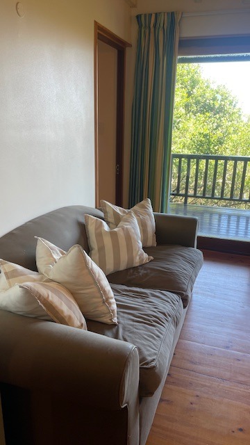 1 x very spacious main bedroom with doors opening to the deck, overlooking the indigenous foliage. en-suite spacious bathroom with bath, shower, toilet and basin.