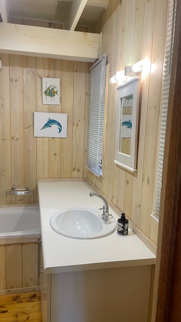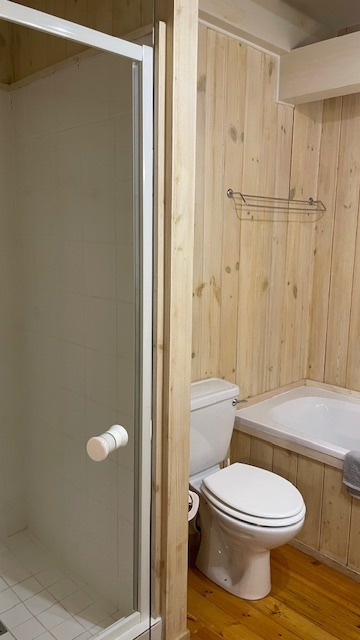 1 x bedroom with a Queen size bed, en-suite bathroom with bath, shower, toilet and basin.