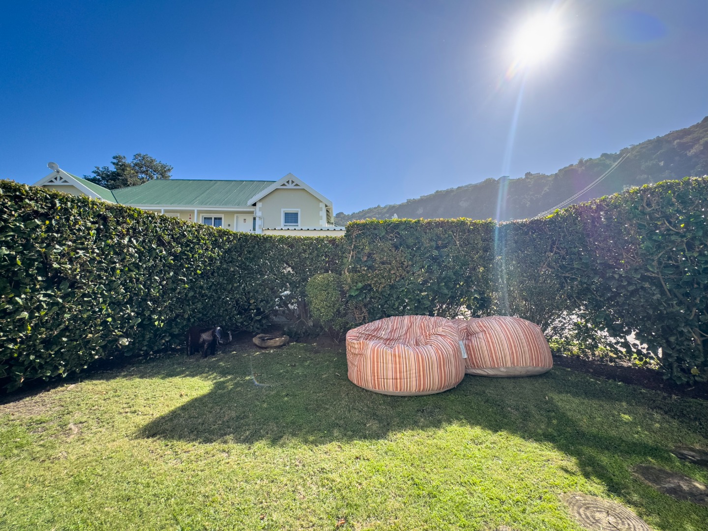 The apartment is very well equipped; it has a lovely front covered patio with furniture and a private garden.