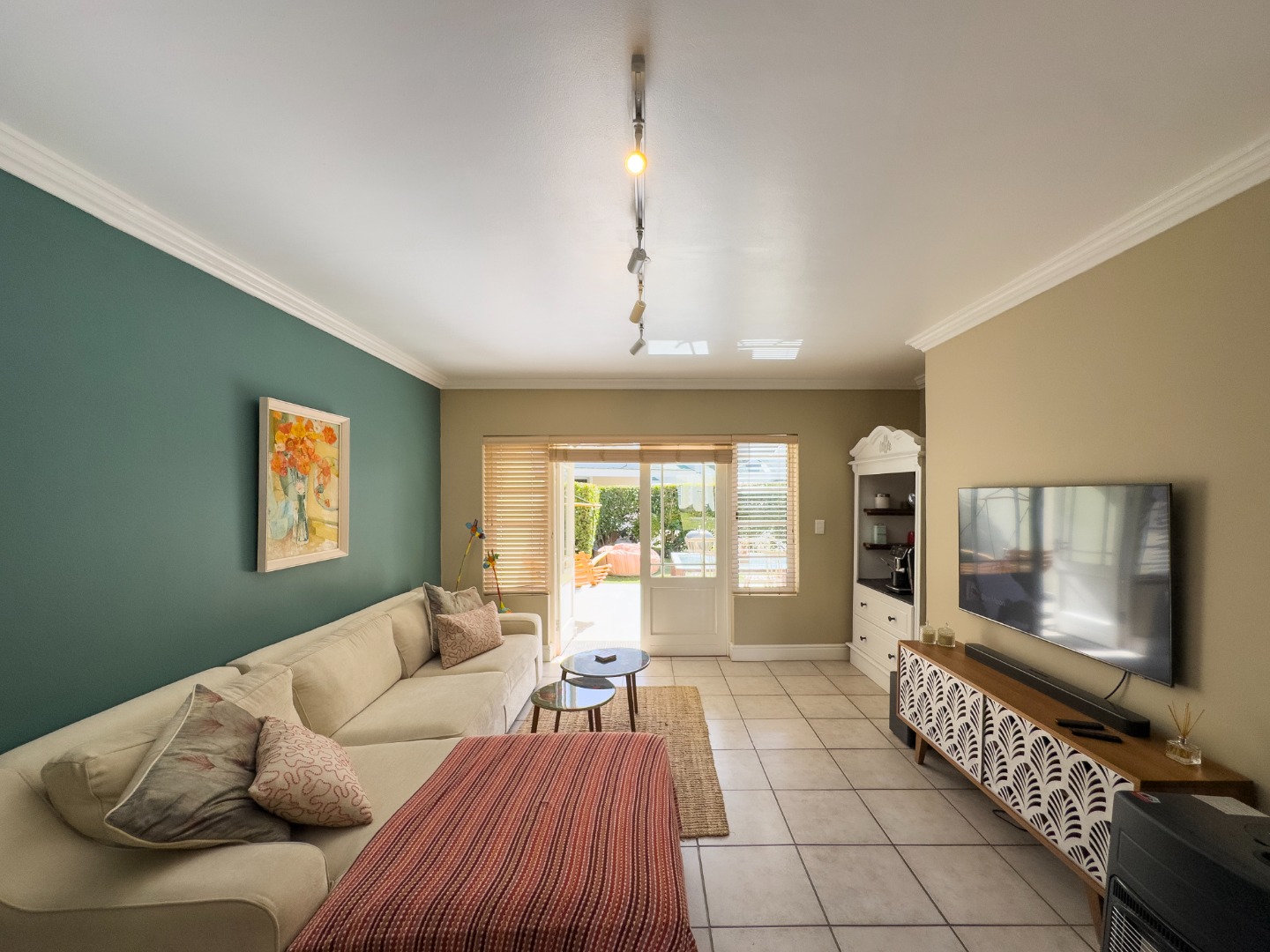 Open plan, lovely furnished lounge with Smart TV with Netflix, coffee station, doors open to the covered patio.