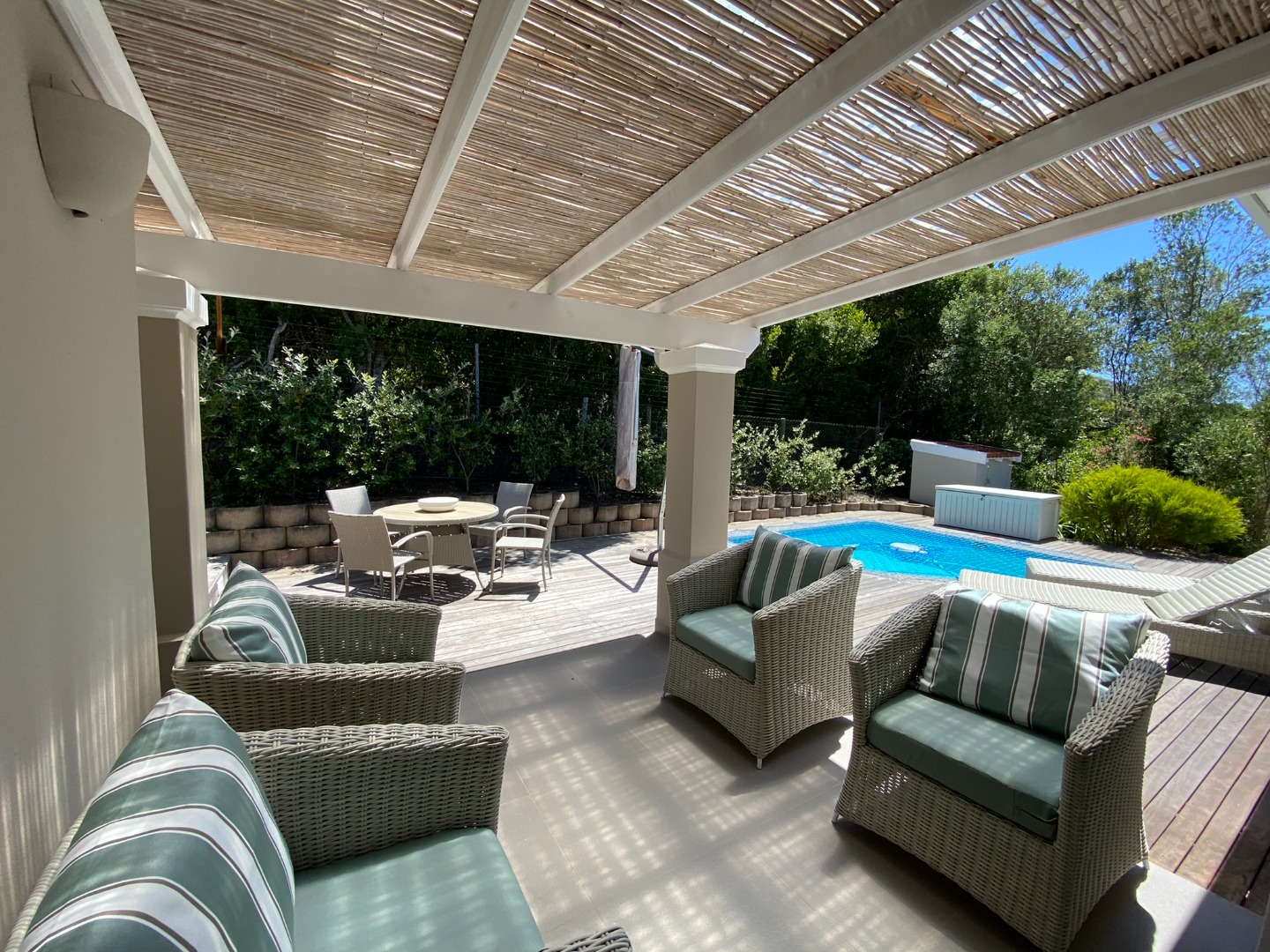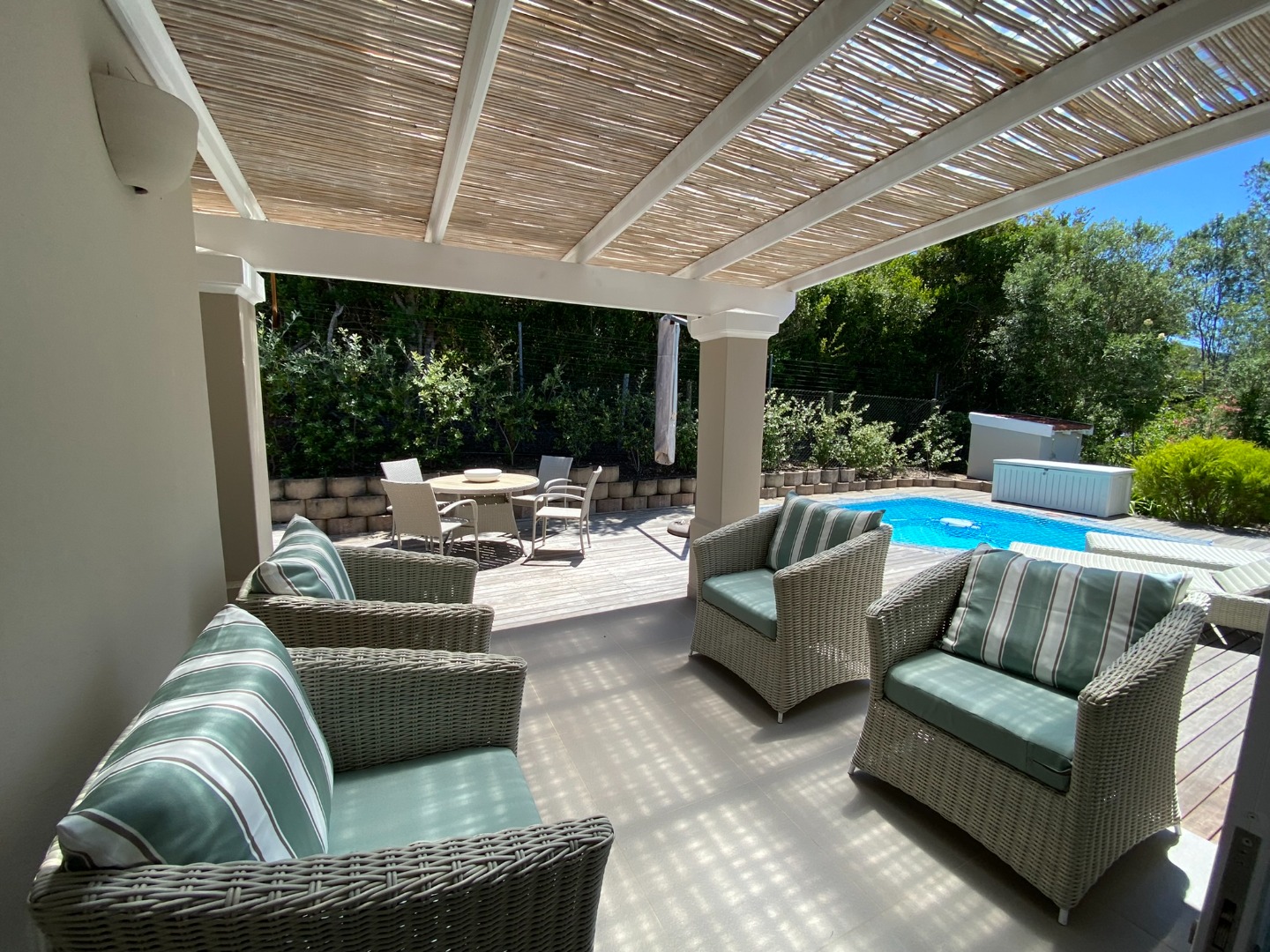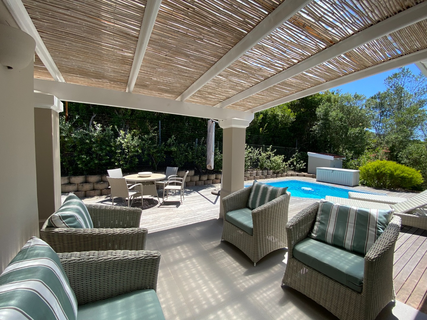Doors lead onto the Decked Patio with Pool and Boma.