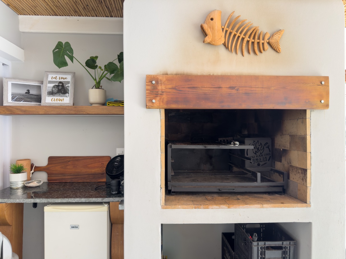 Lovely Patio with Braai, Bar Fridge and outdoor wooden Table seating 6.