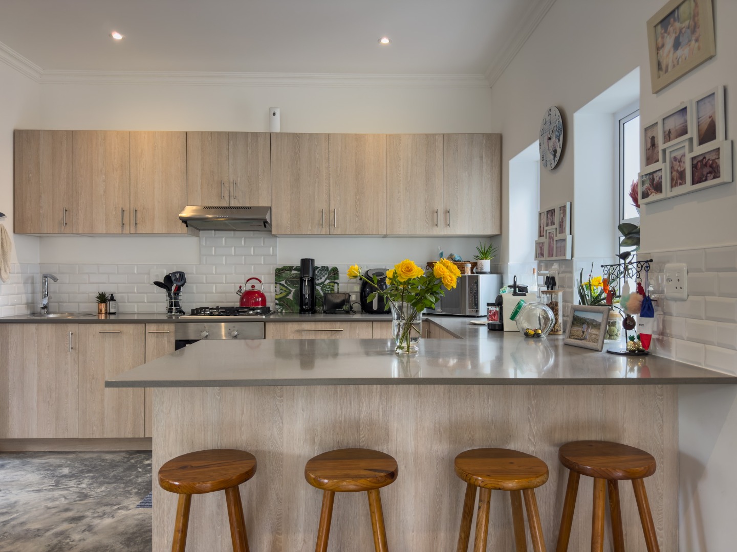 Kitchen ledge Table seating 4 and Kitchen with Scullery.