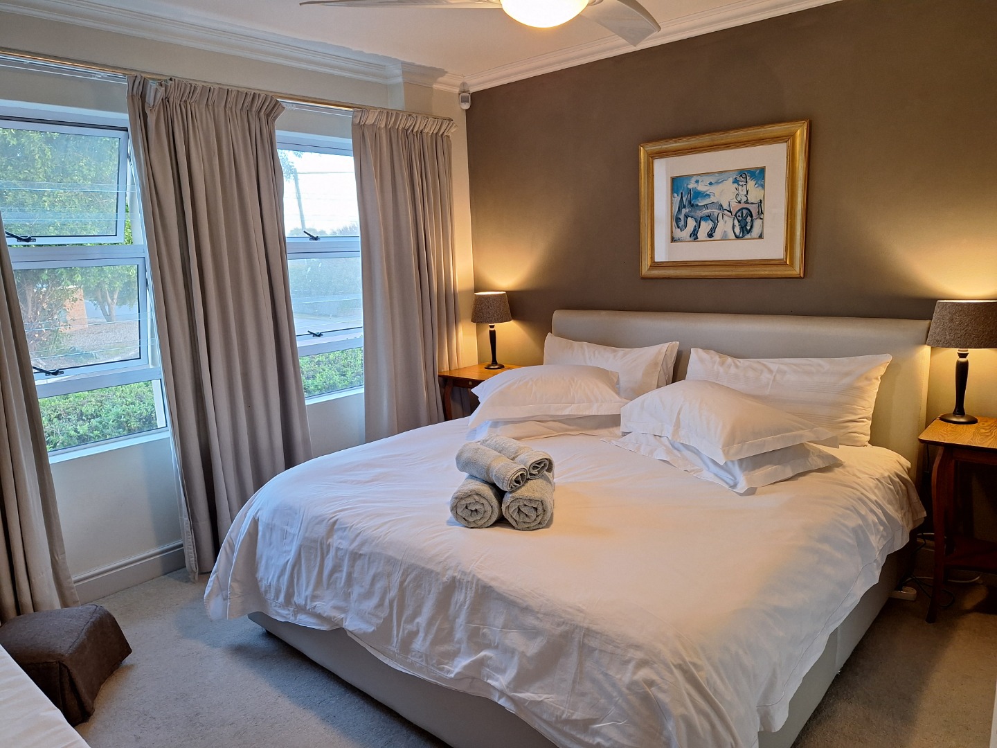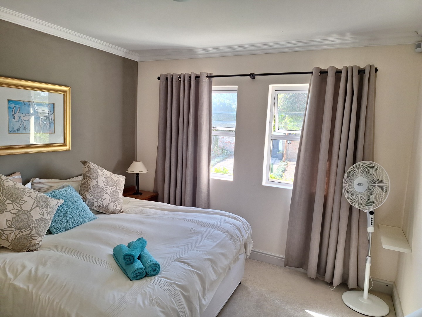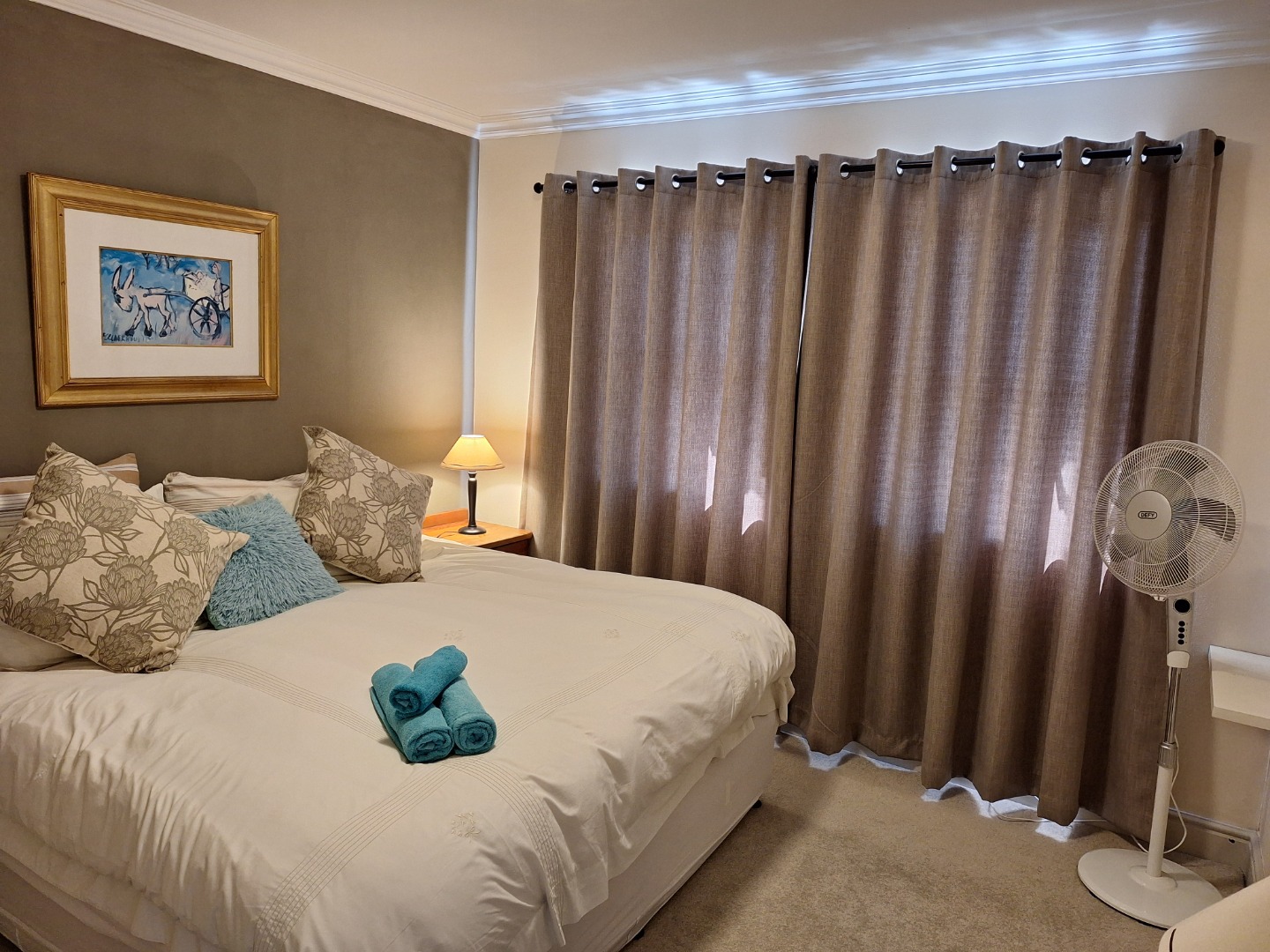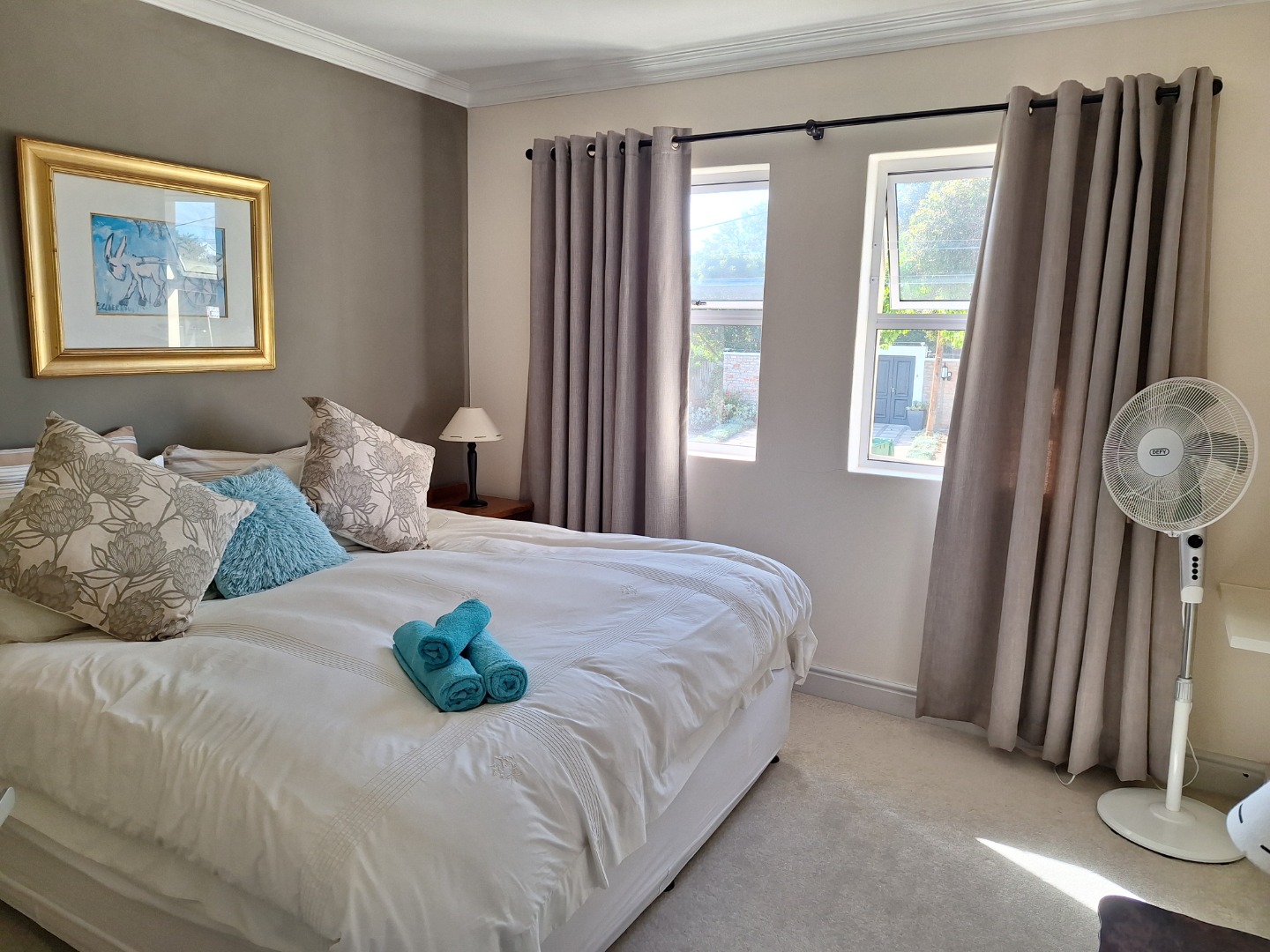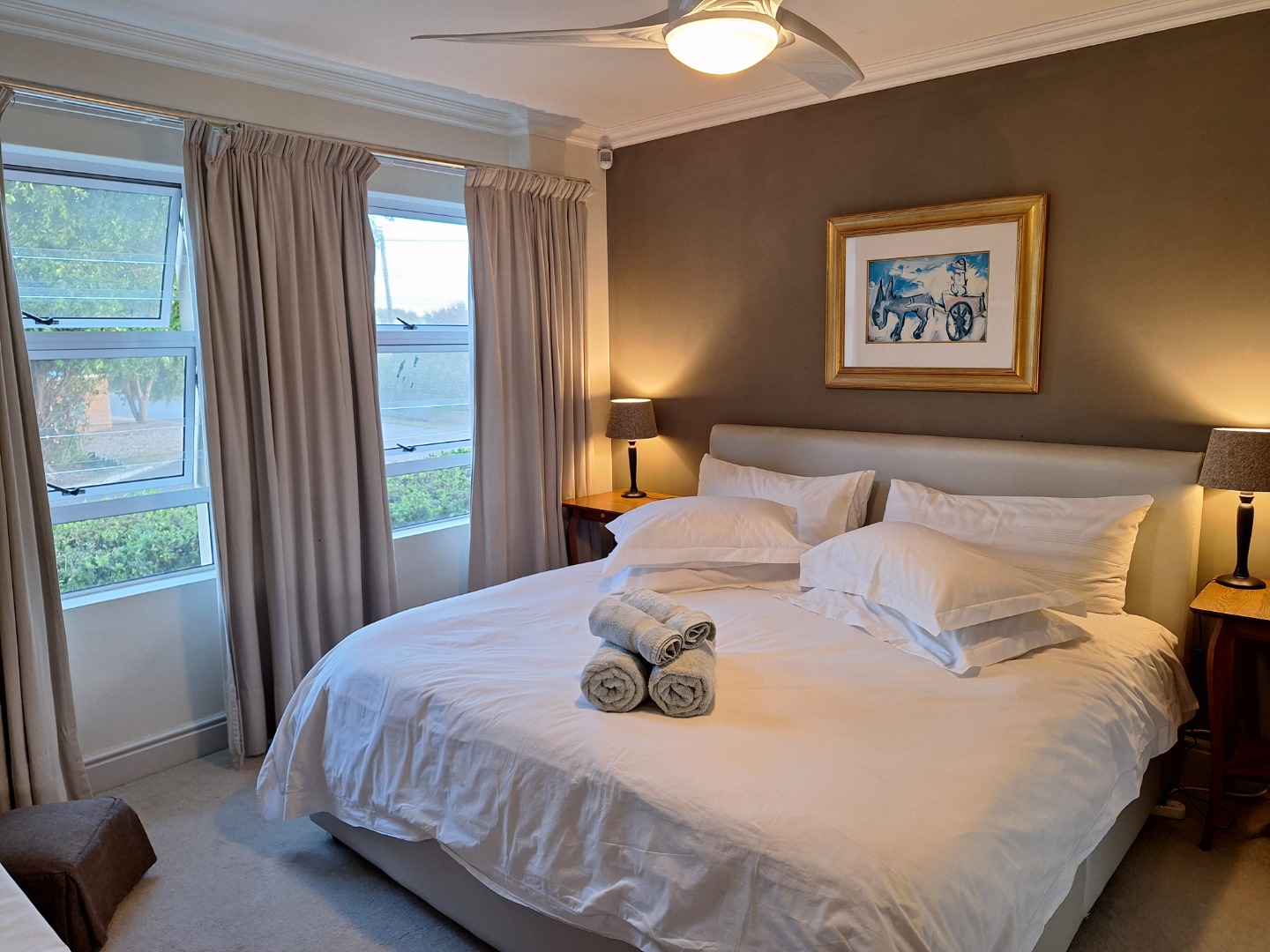 All bedrooms have fans, and the main bedroom has a ceiling fan.