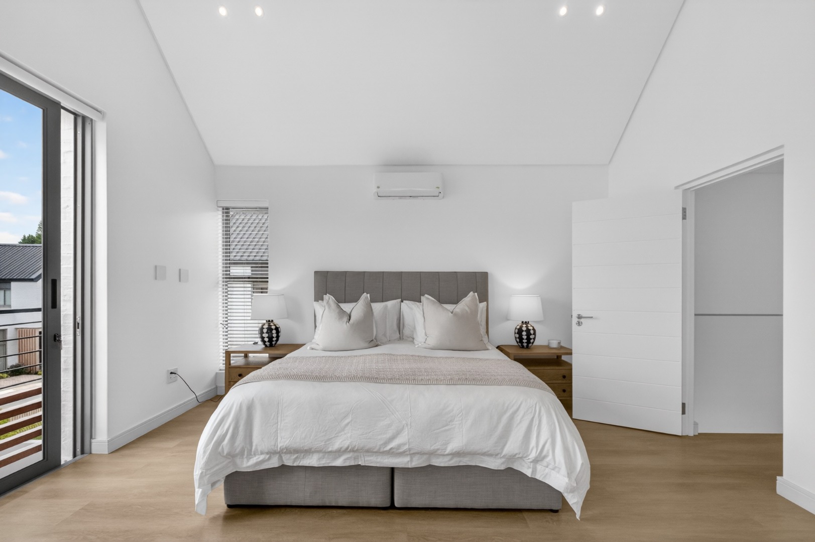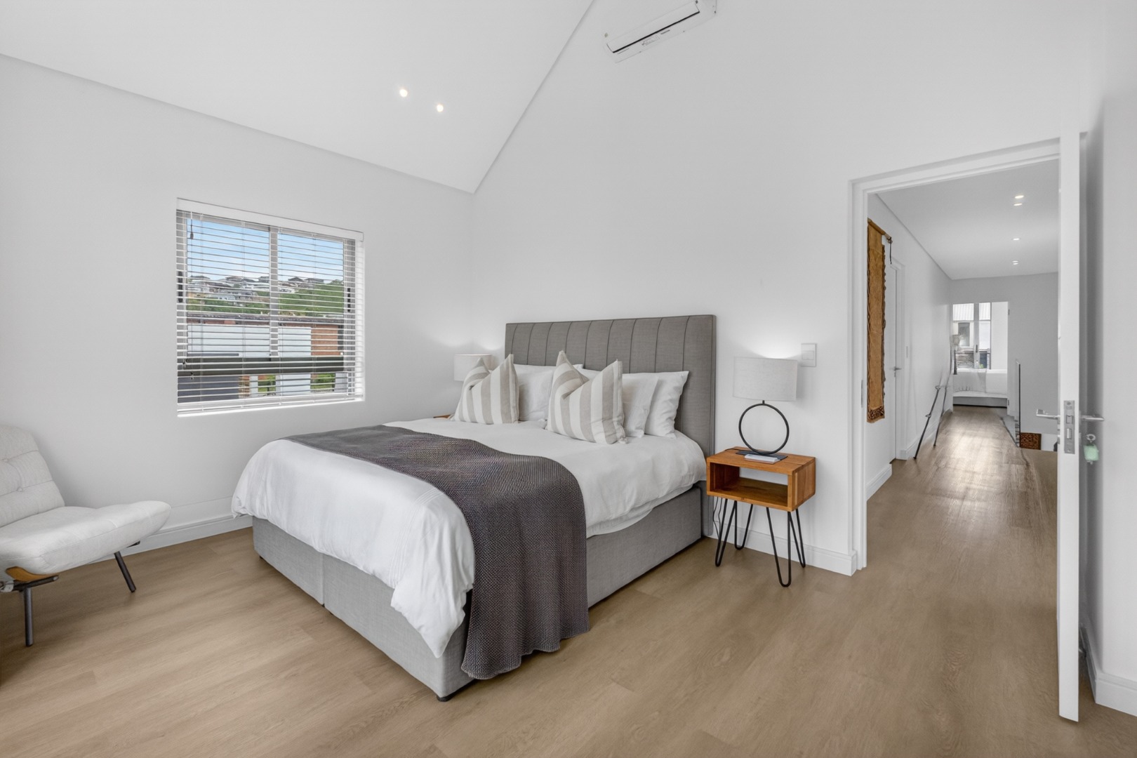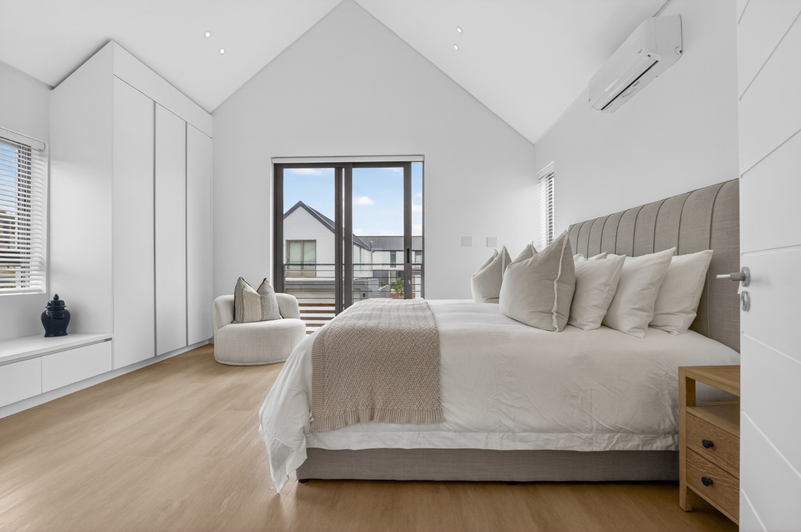 All three bedrooms are furnished with luxury white linen, stylish throws, and plush cushions, air conditioner.