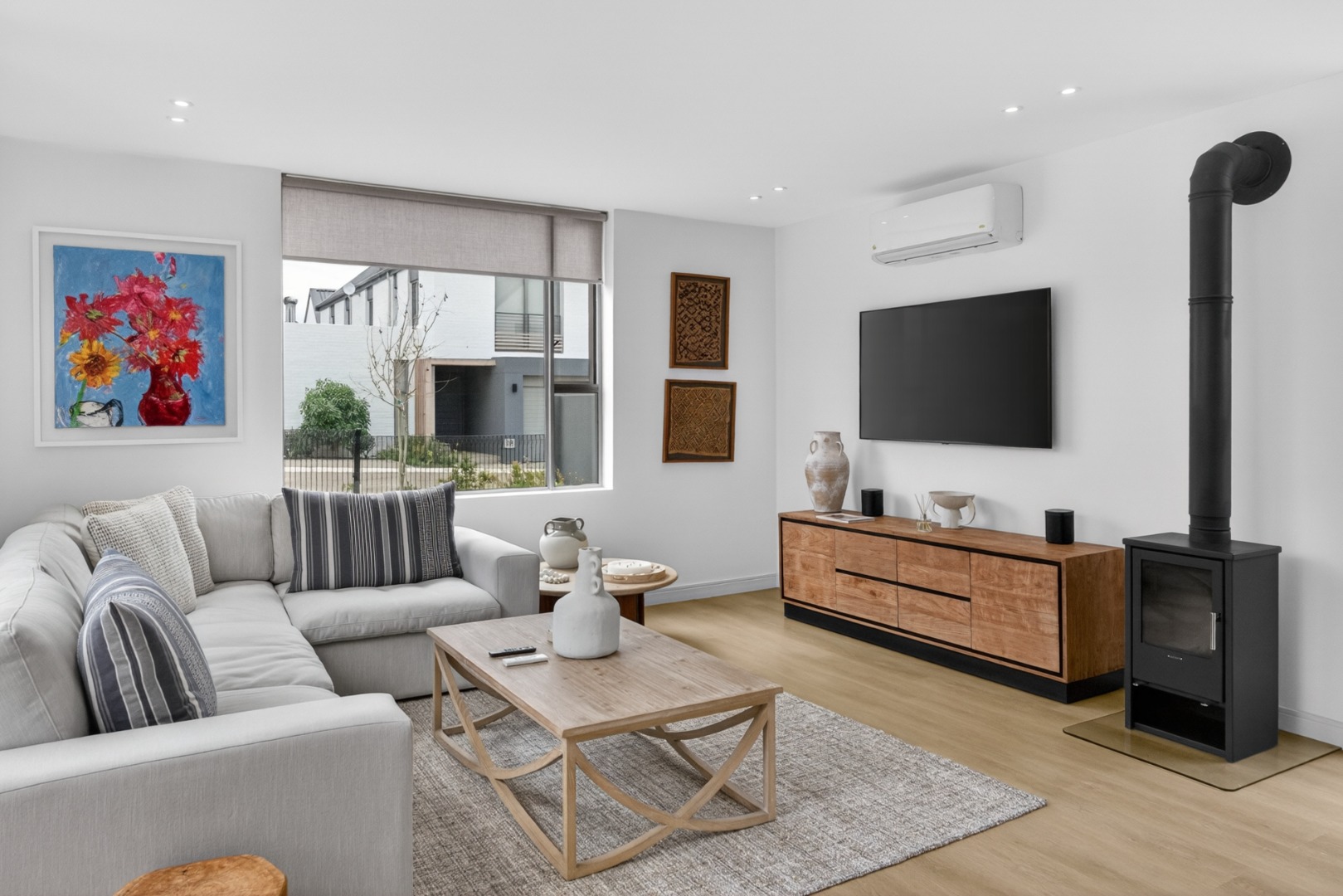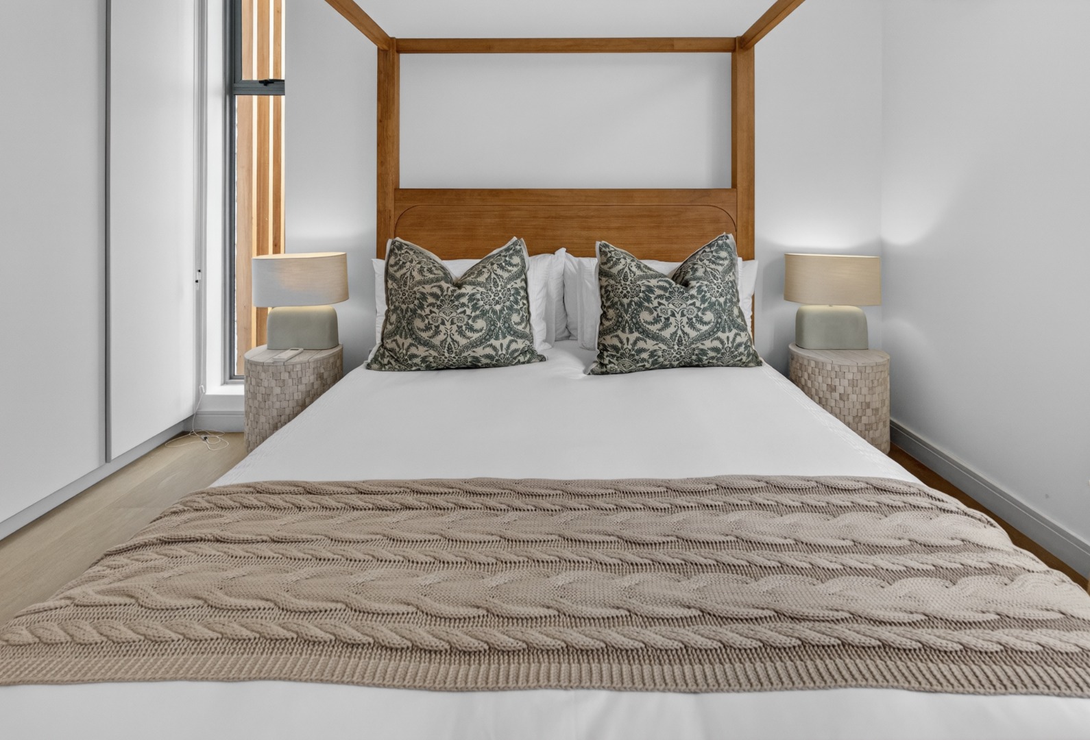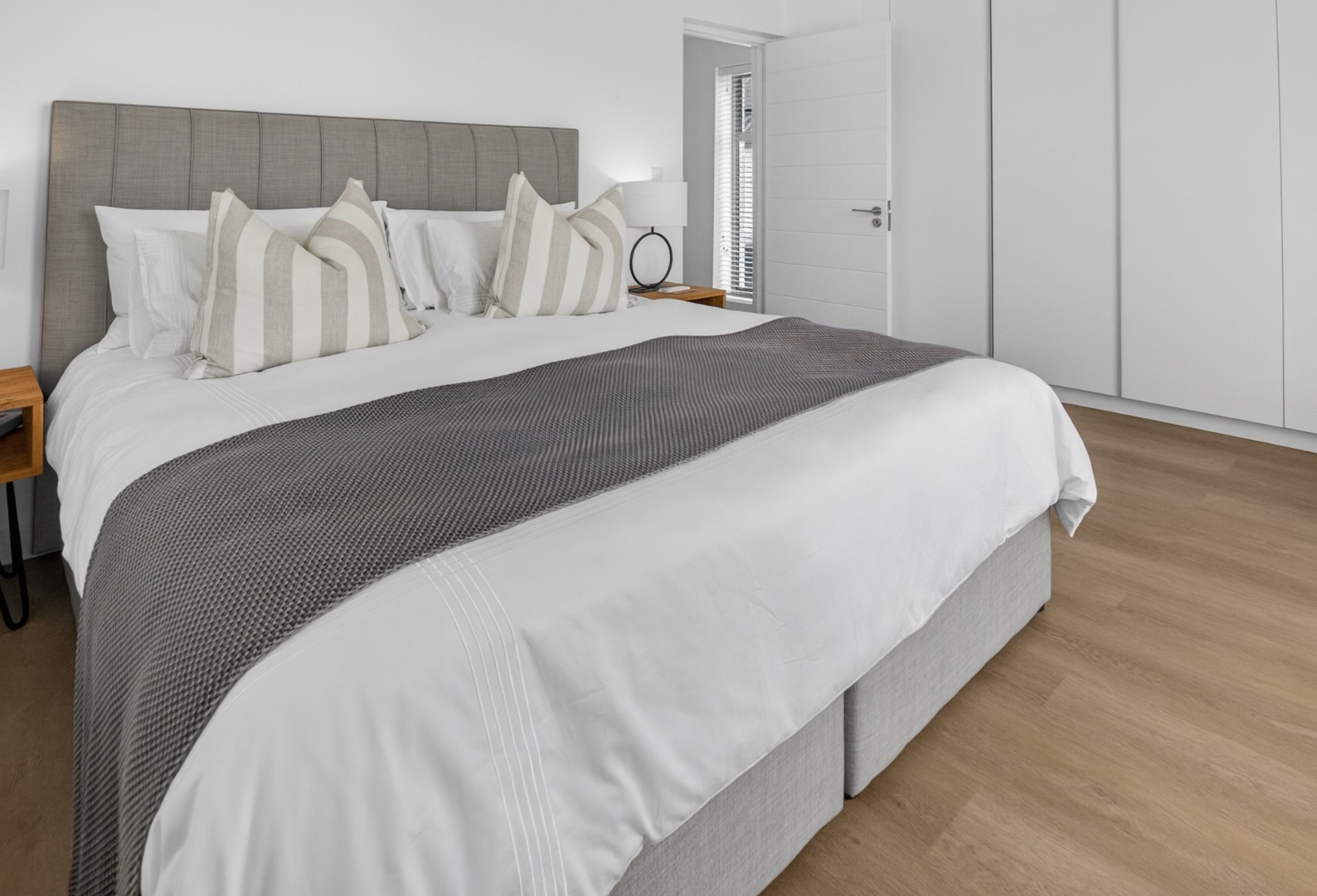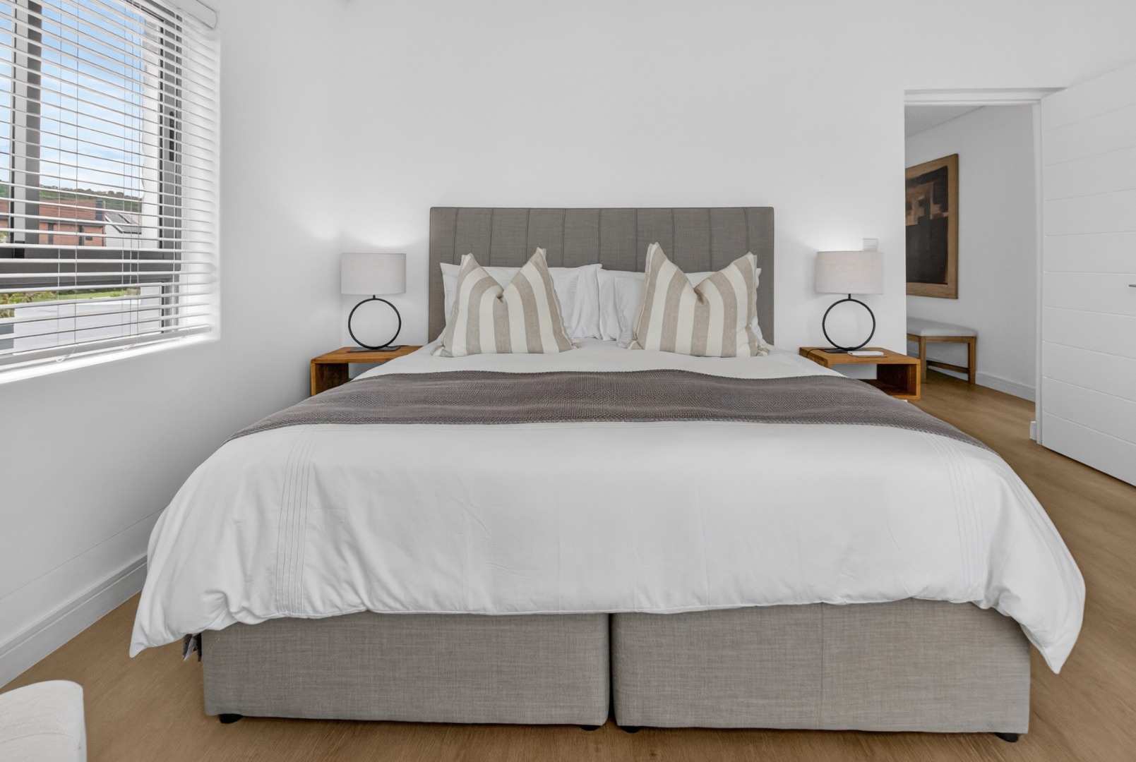 All three bedrooms are furnished with luxury white linen, stylish throws, and plush cushions, air conditioner.