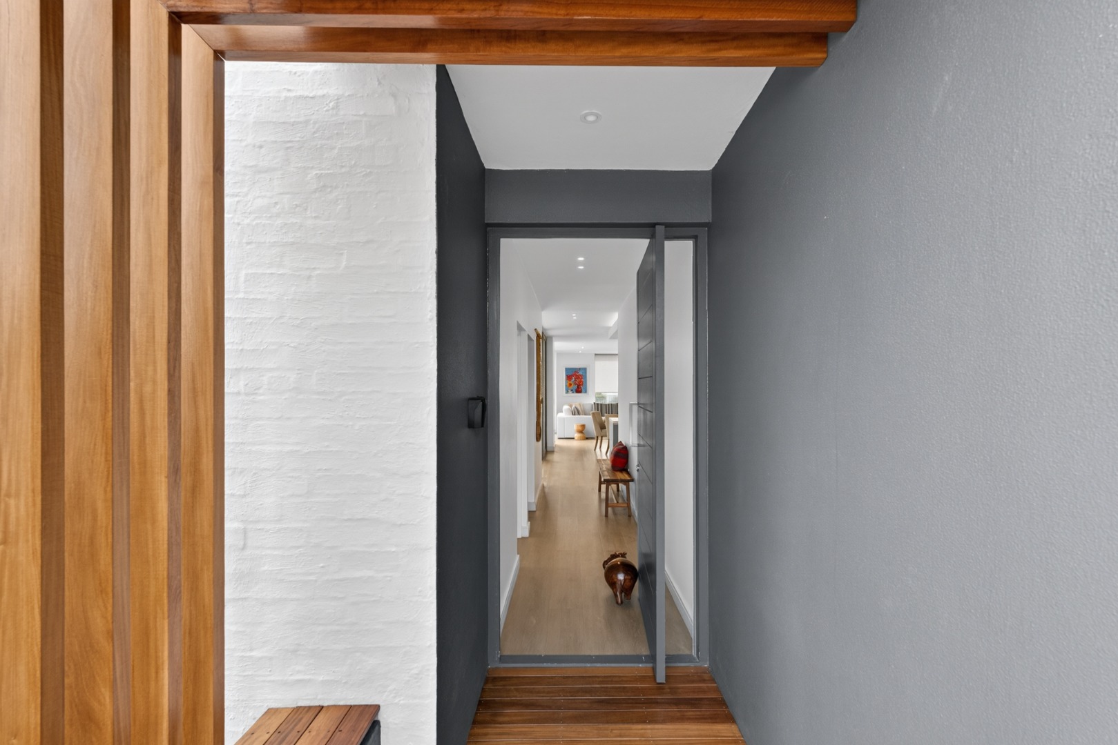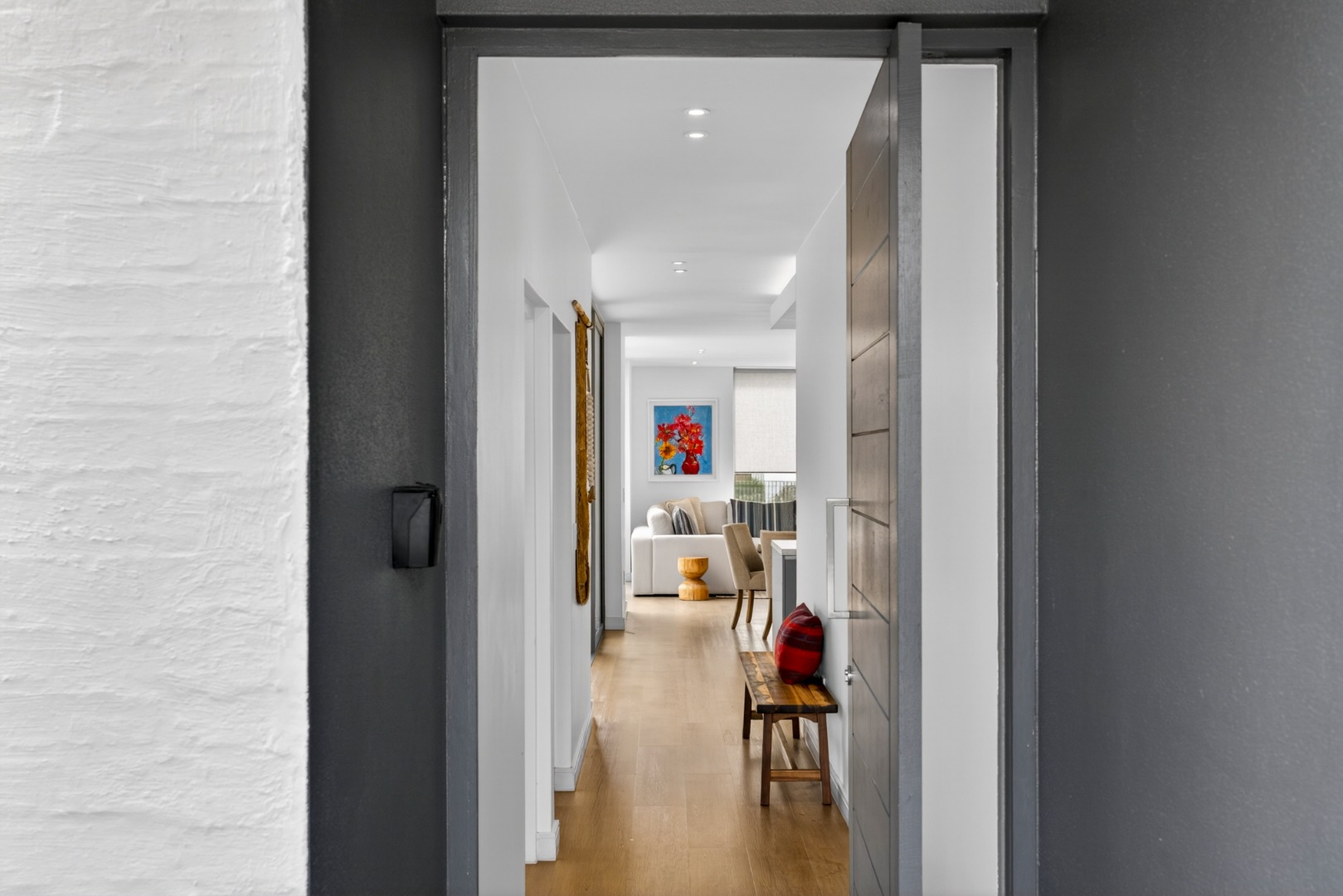Enter the home through the entrance hall.