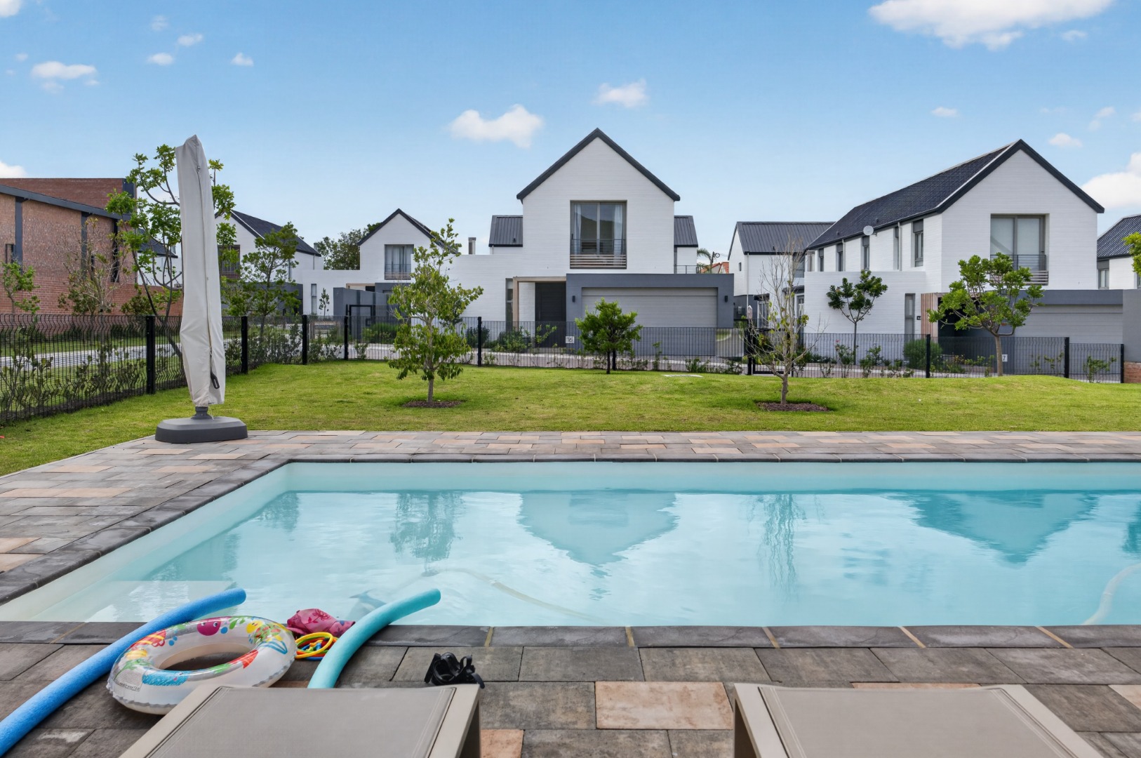 The estate offers superb amenities, including a swimming pool and clubhouse.