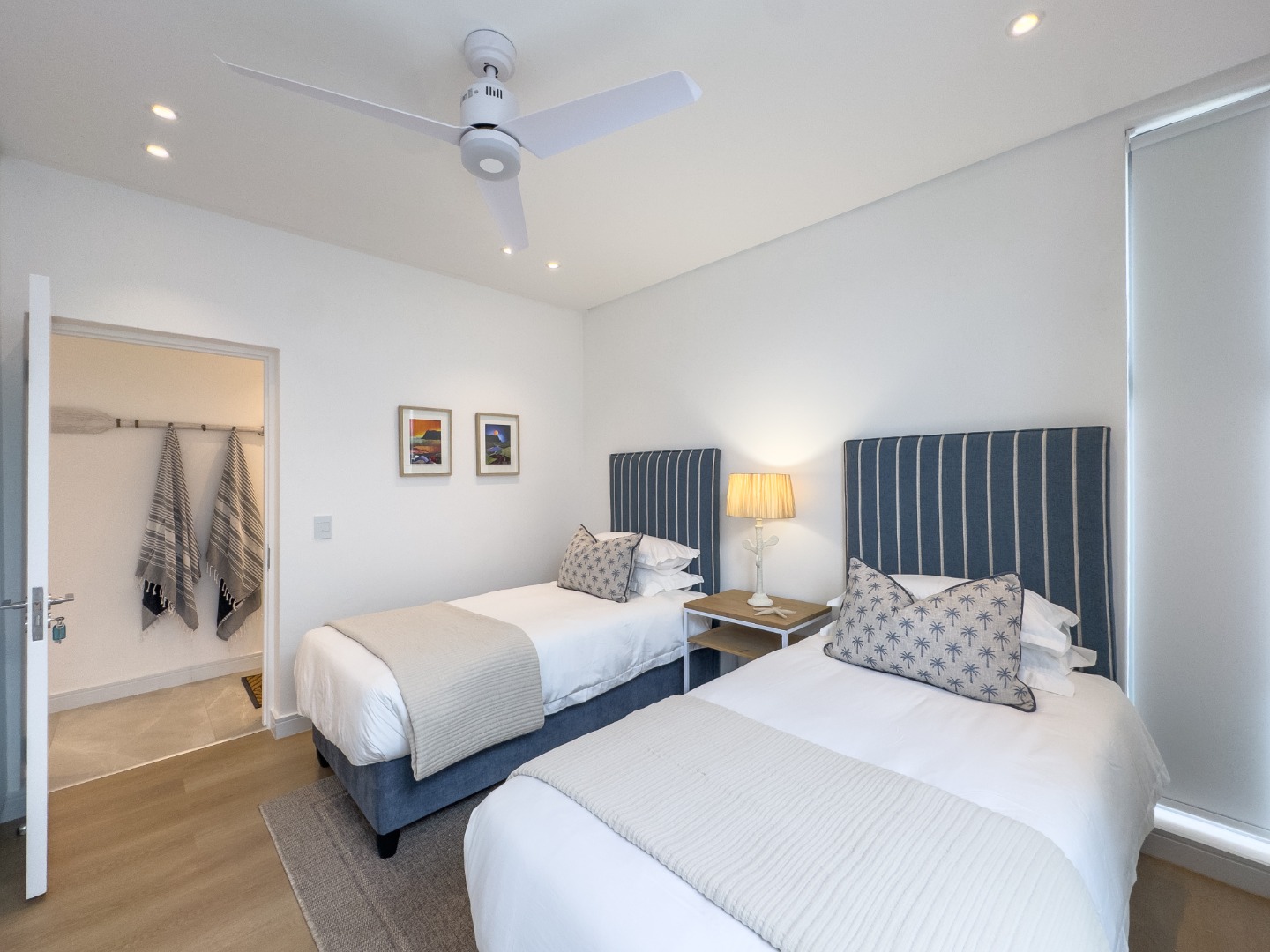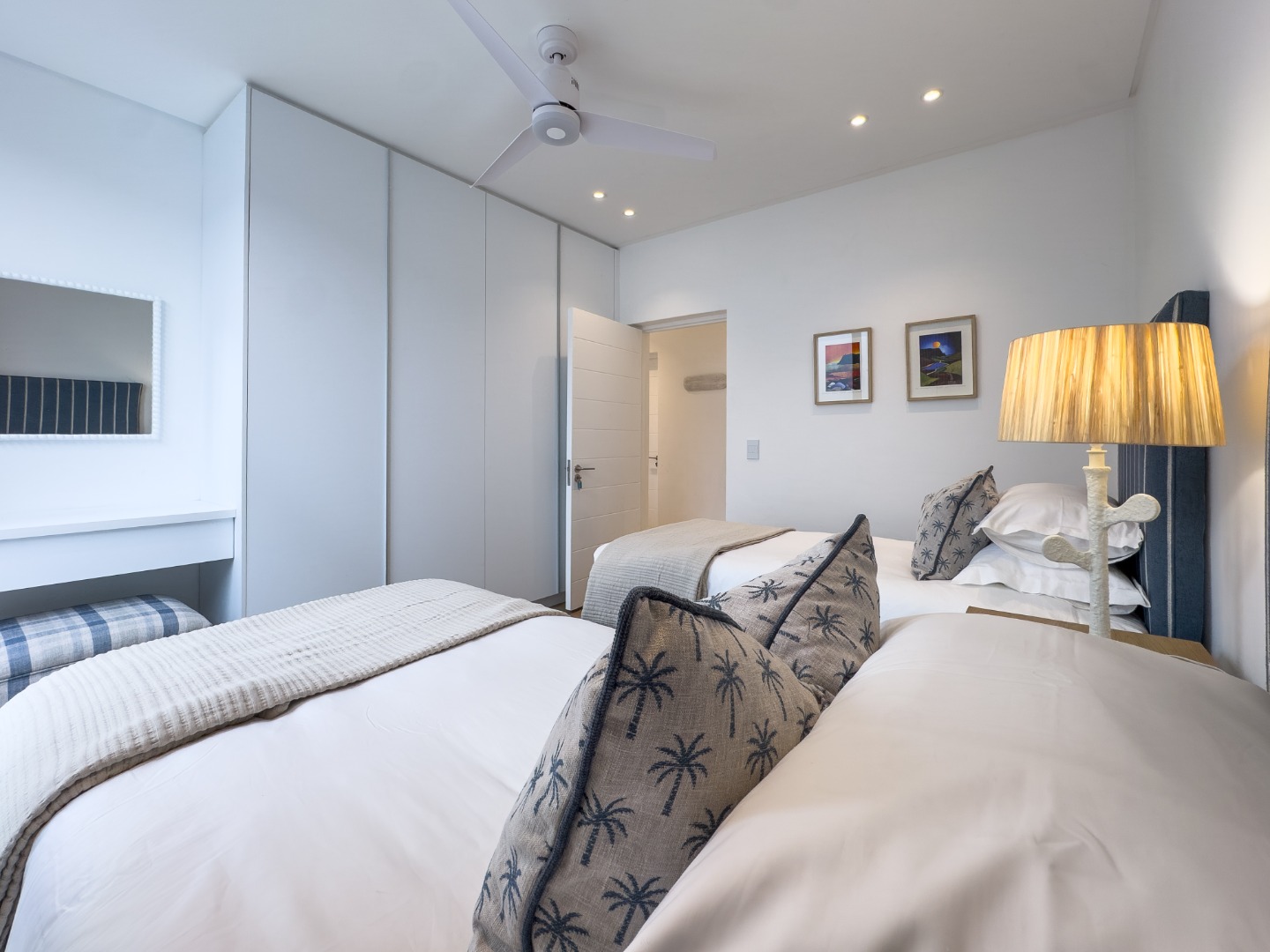 All three bedrooms are furnished with luxury white linen, stylish throws, and plush cushions, ceiling fans.