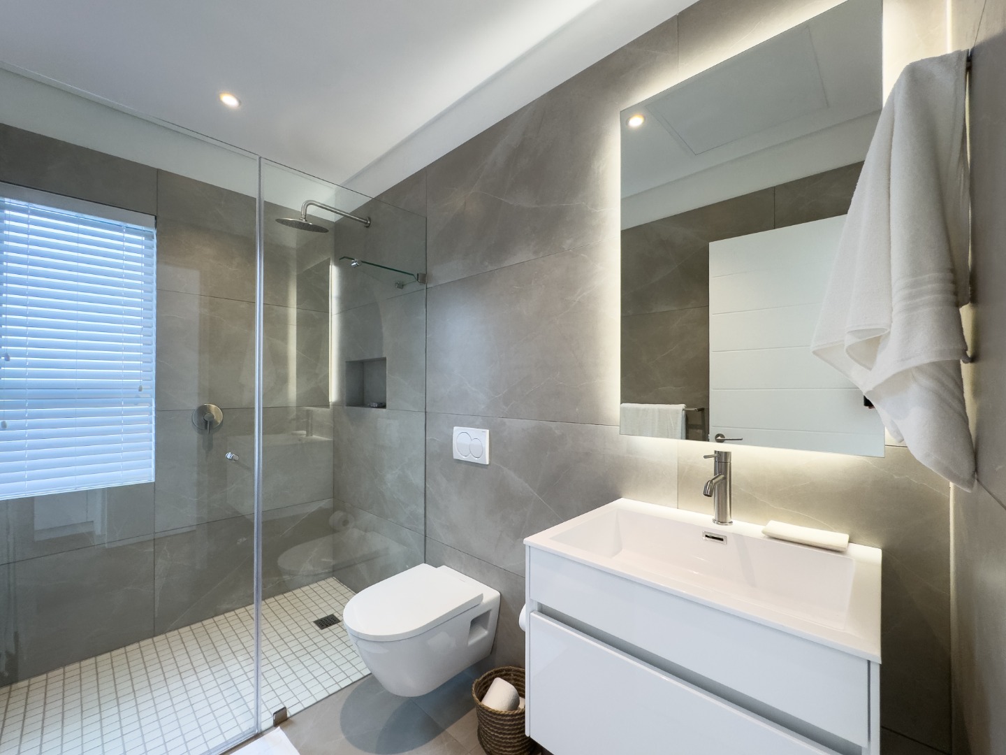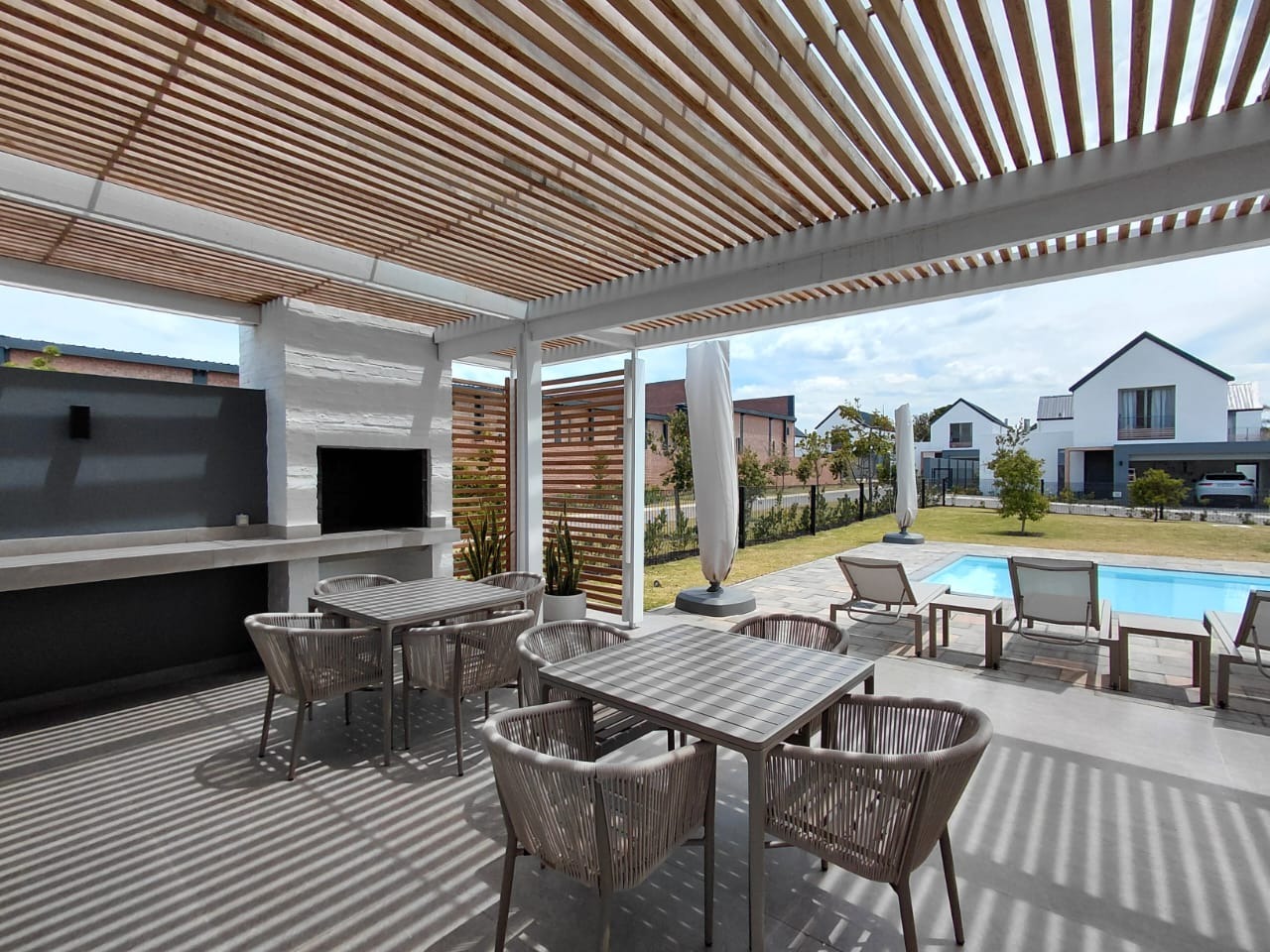 The enclosed patio—with stackable doors—creates a seamless indoor/outdoor flow and includes a built-in braai, perfect for relaxed entertaining. The private, enclosed garden adds to the home’s tranquil appeal.