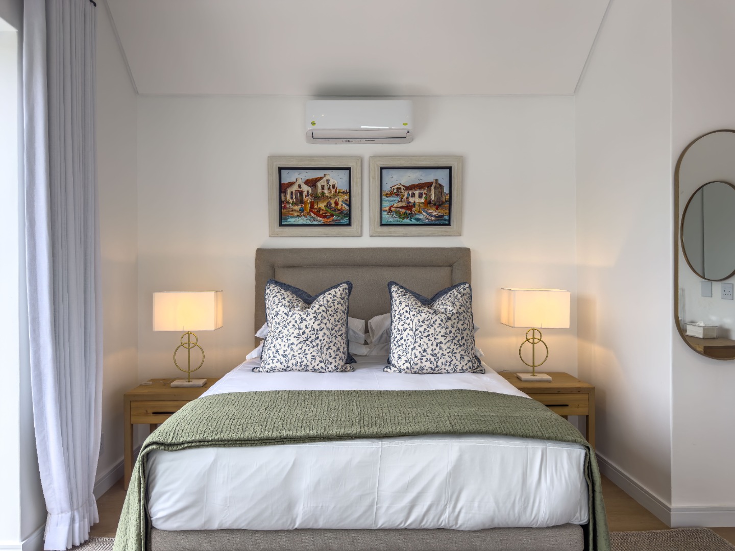 All three bedrooms are furnished with luxury white linen, stylish throws, and plush cushions, ceiling fans.