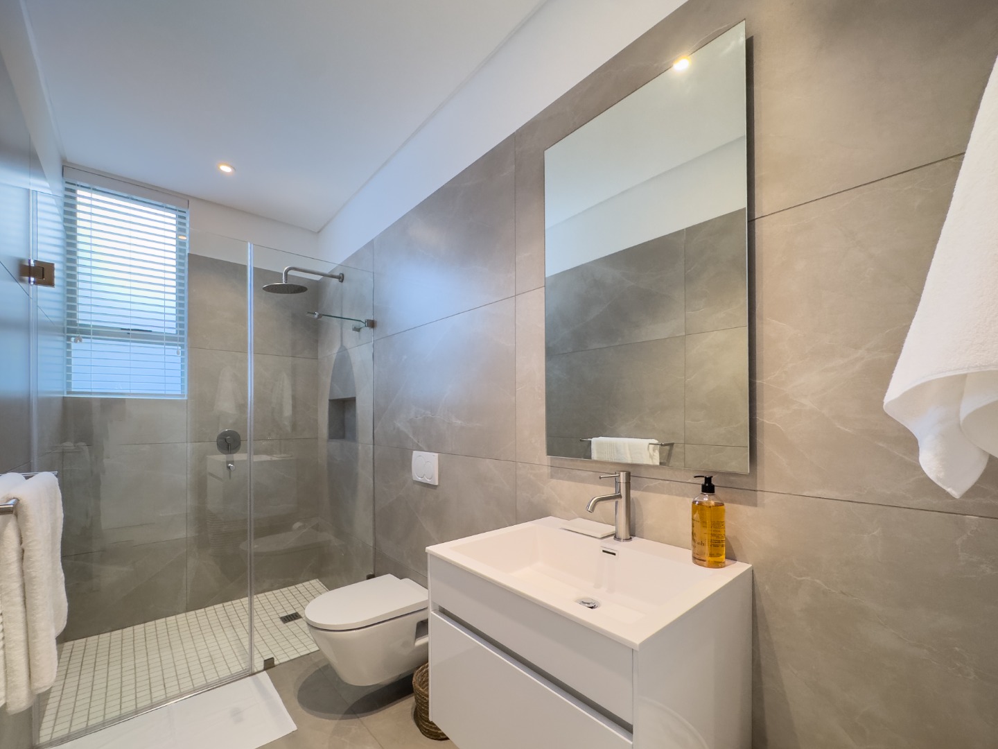The enclosed patio—with stackable doors—creates a seamless indoor/outdoor flow and includes a built-in braai, perfect for relaxed entertaining. The private, enclosed garden adds to the home’s tranquil appeal.