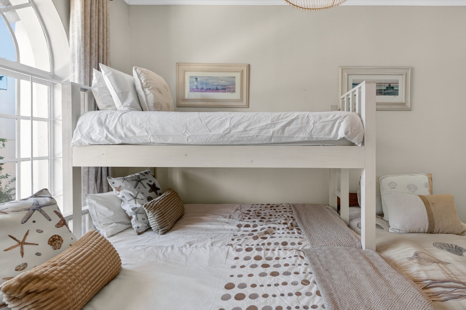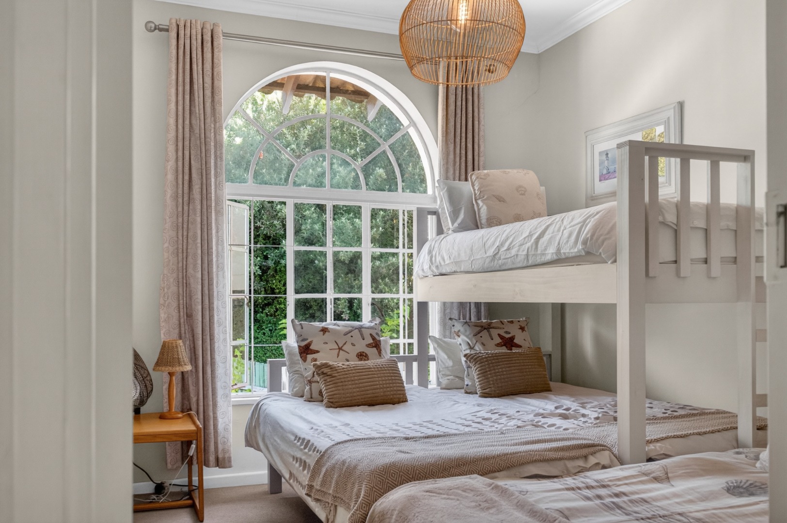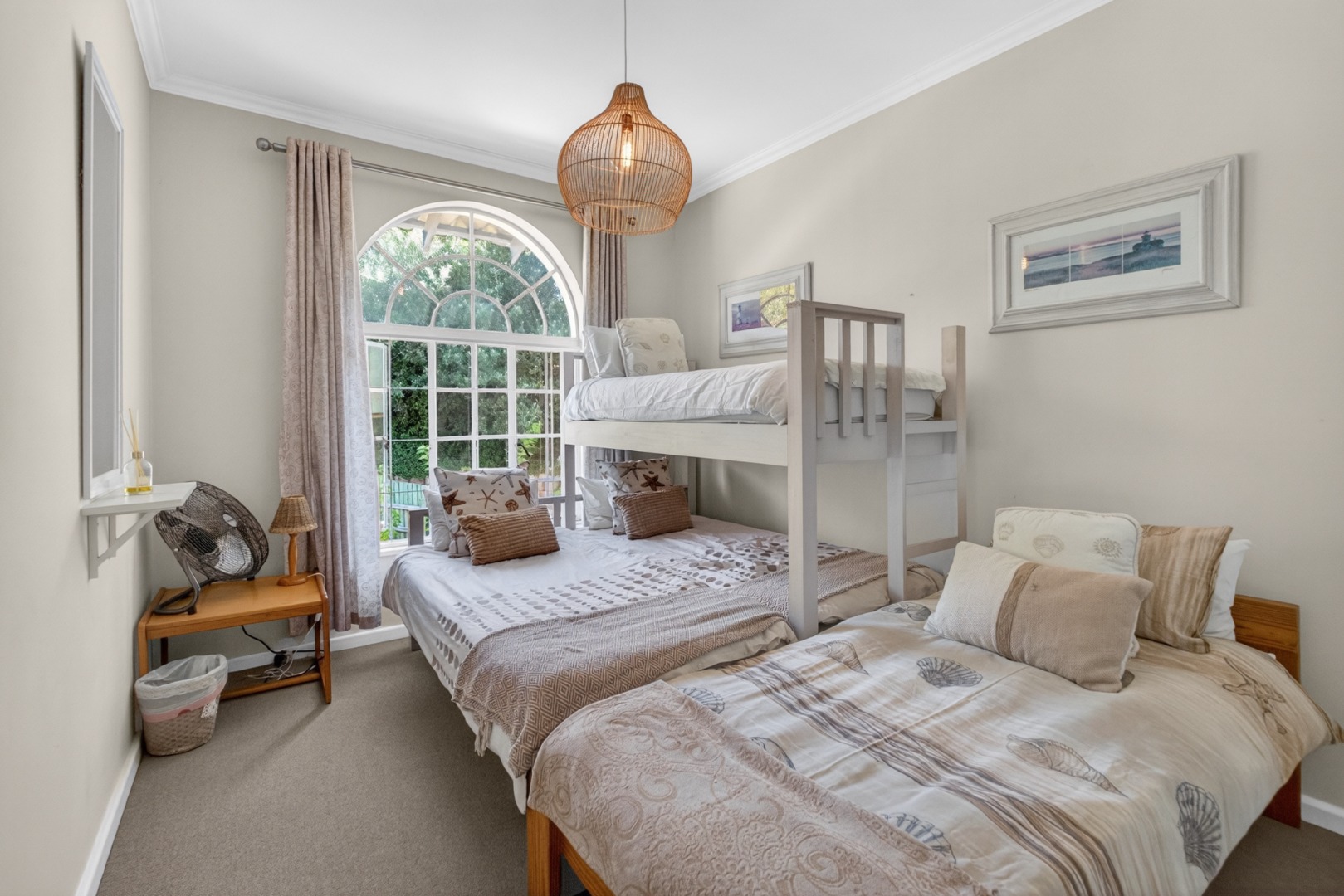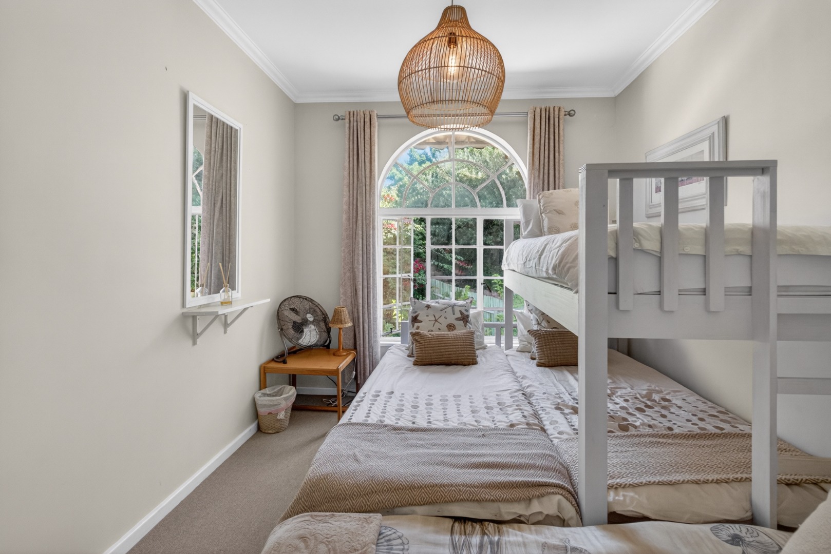1x bedroom with a bunk bed and 2 x single beds.
