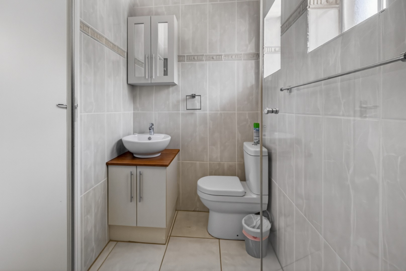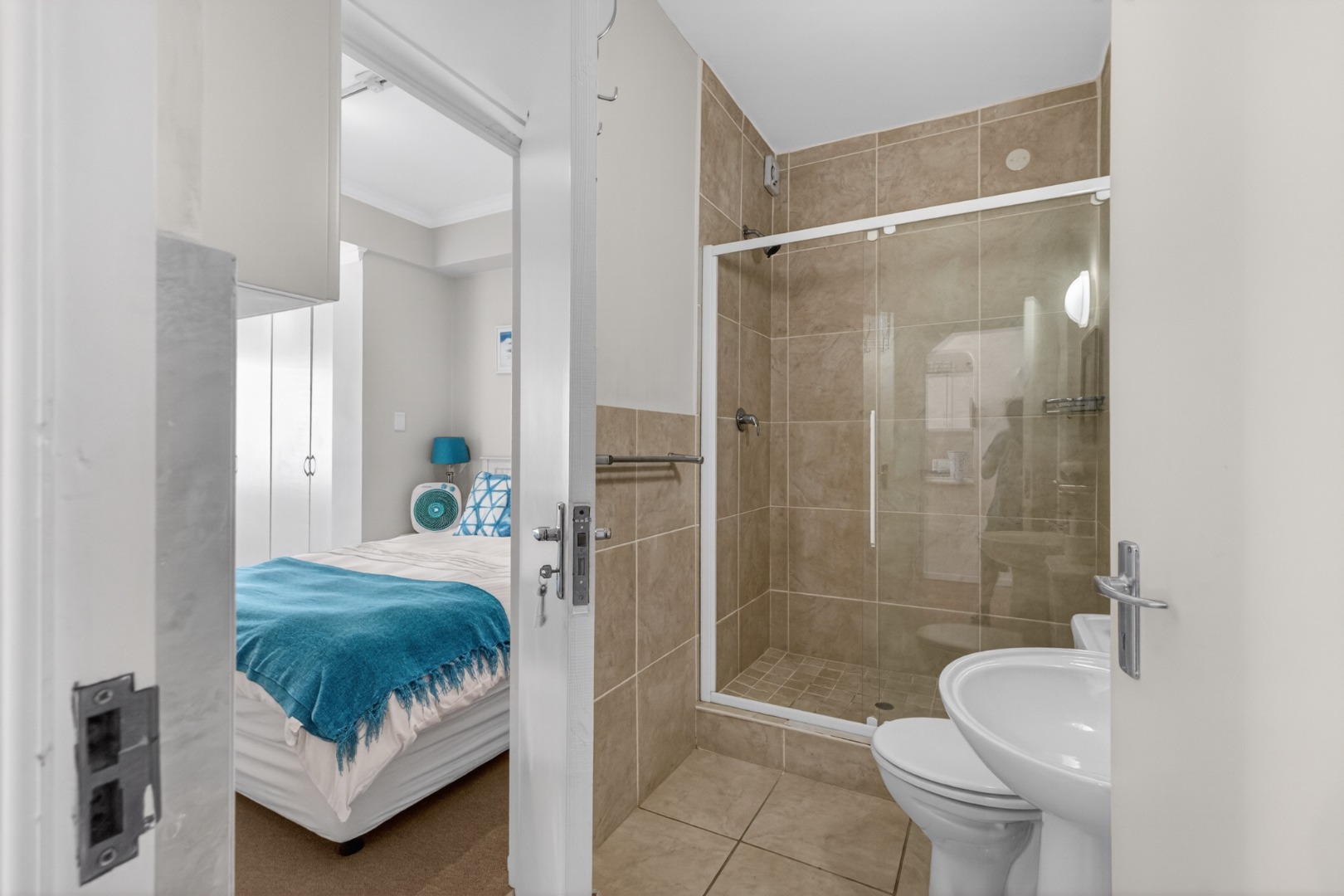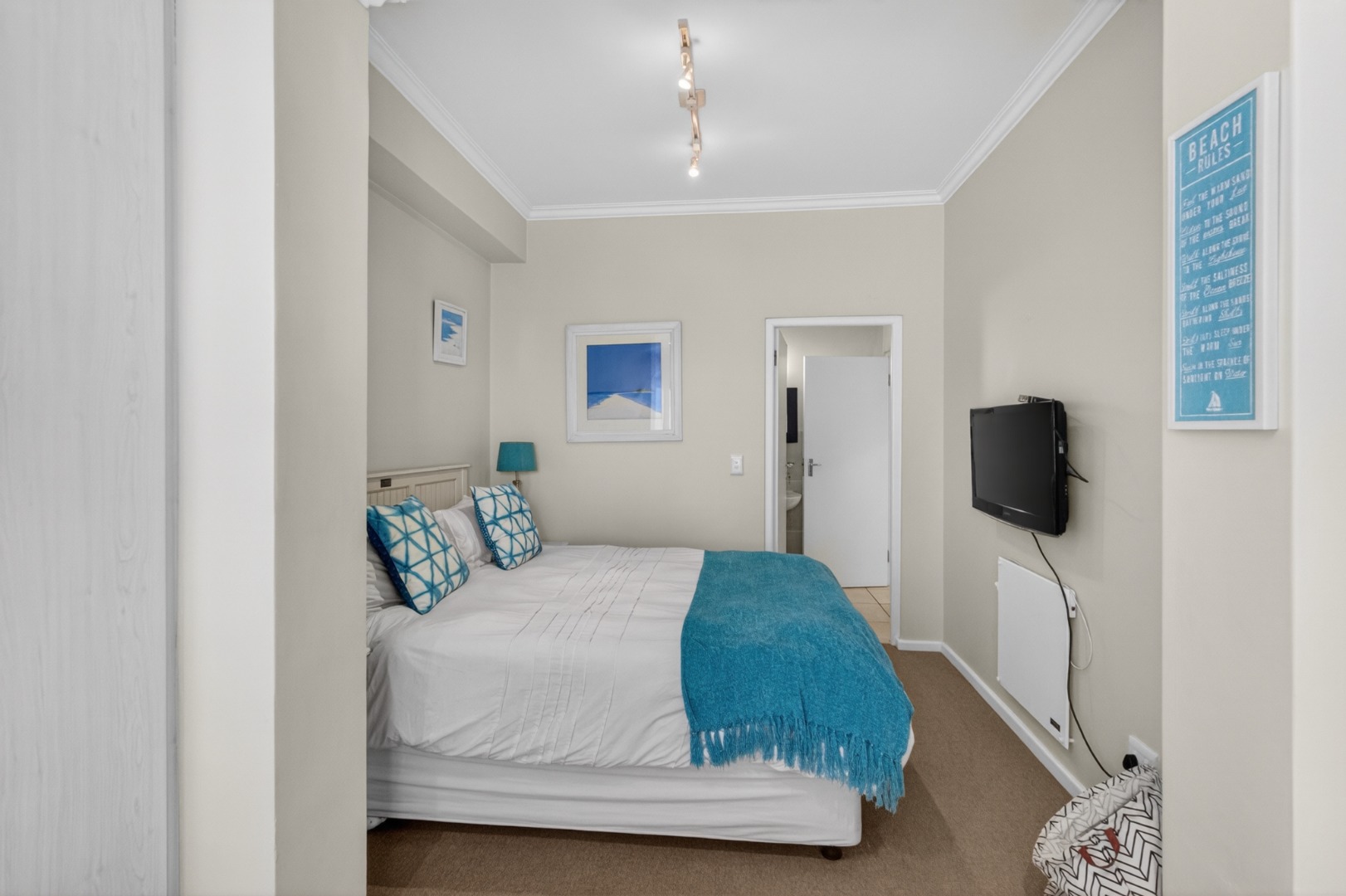 1 x spacious bedroom with a Queen bed, TV, en-suite shower, toilet and basin (this bathroom also serves as the guest bathroom.