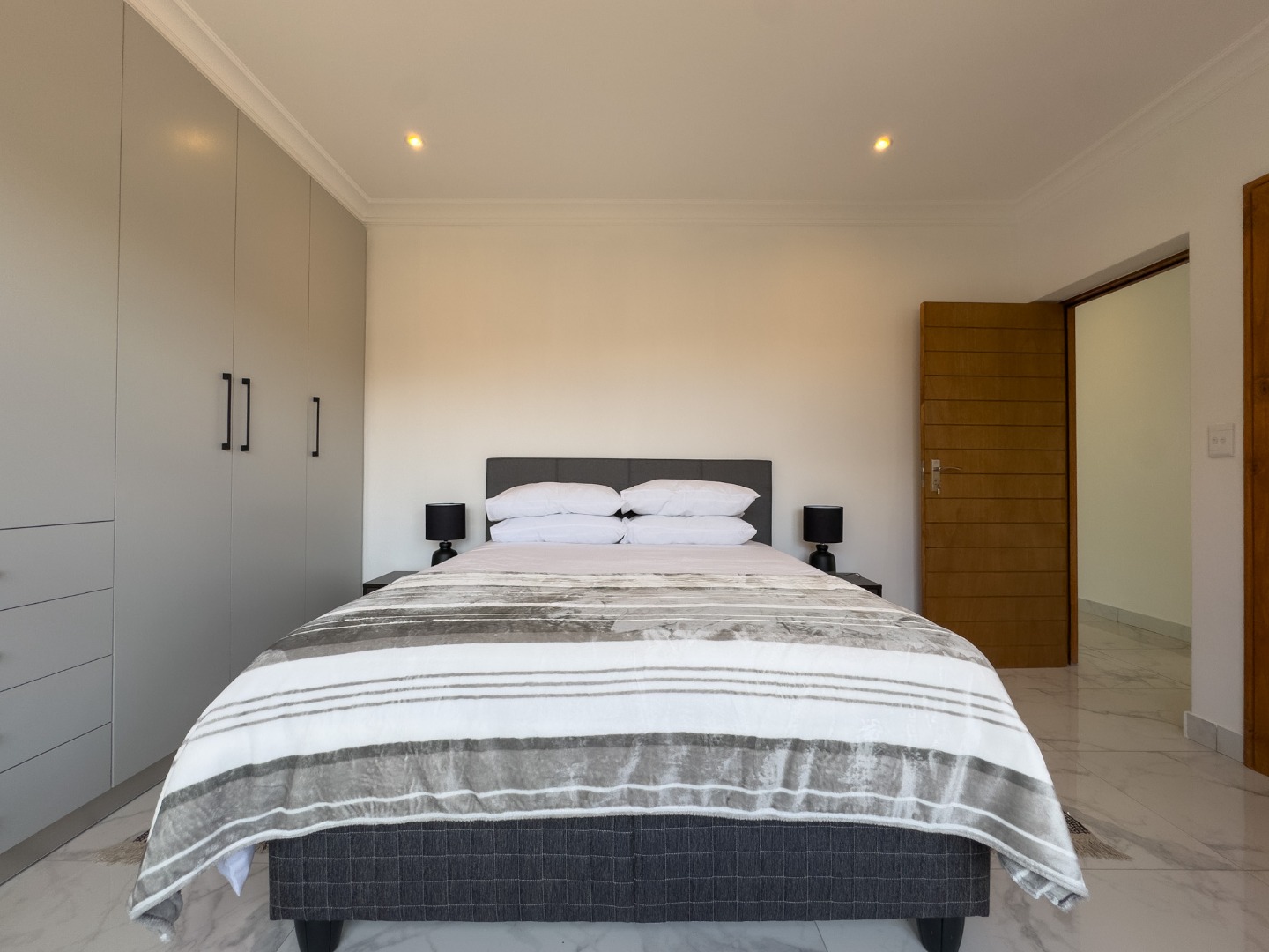 1 x bedroom with its own private entrance, Queen size bed, en-suite shower, toilet and basin.