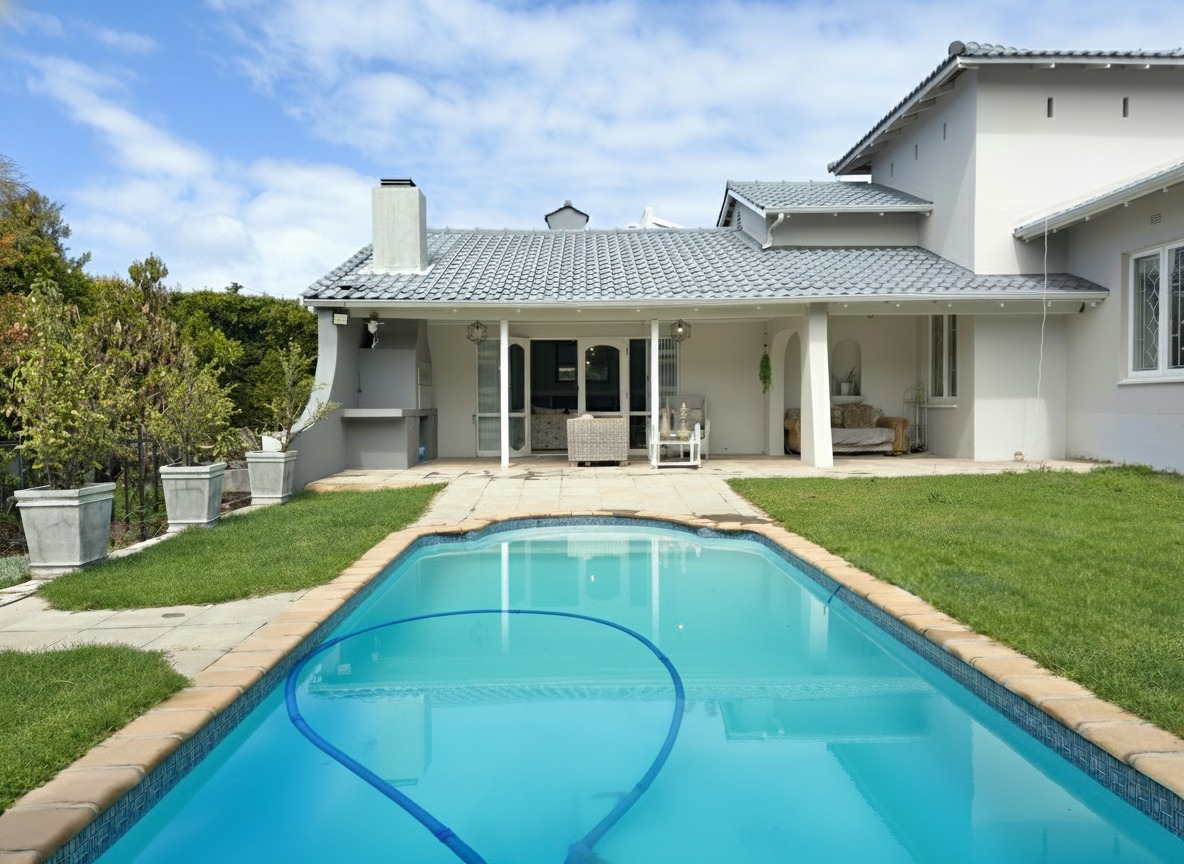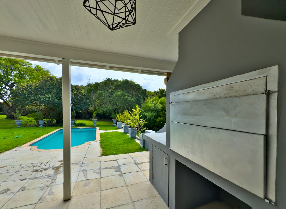 Enjoy outdoor living at its best with a covered patio and built-in braai, overlooking the swimming pool and garden — ideal for children and pets alike.