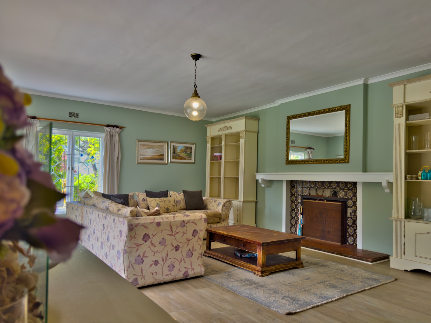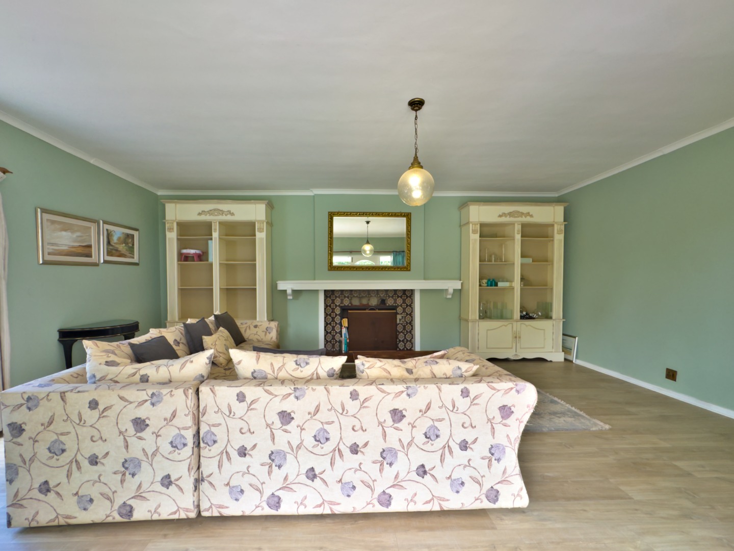 A large family lounge with a cosy fireplace creates an inviting atmosphere, while the separate farm-style kitchen is perfect for home cooking and gatherings.