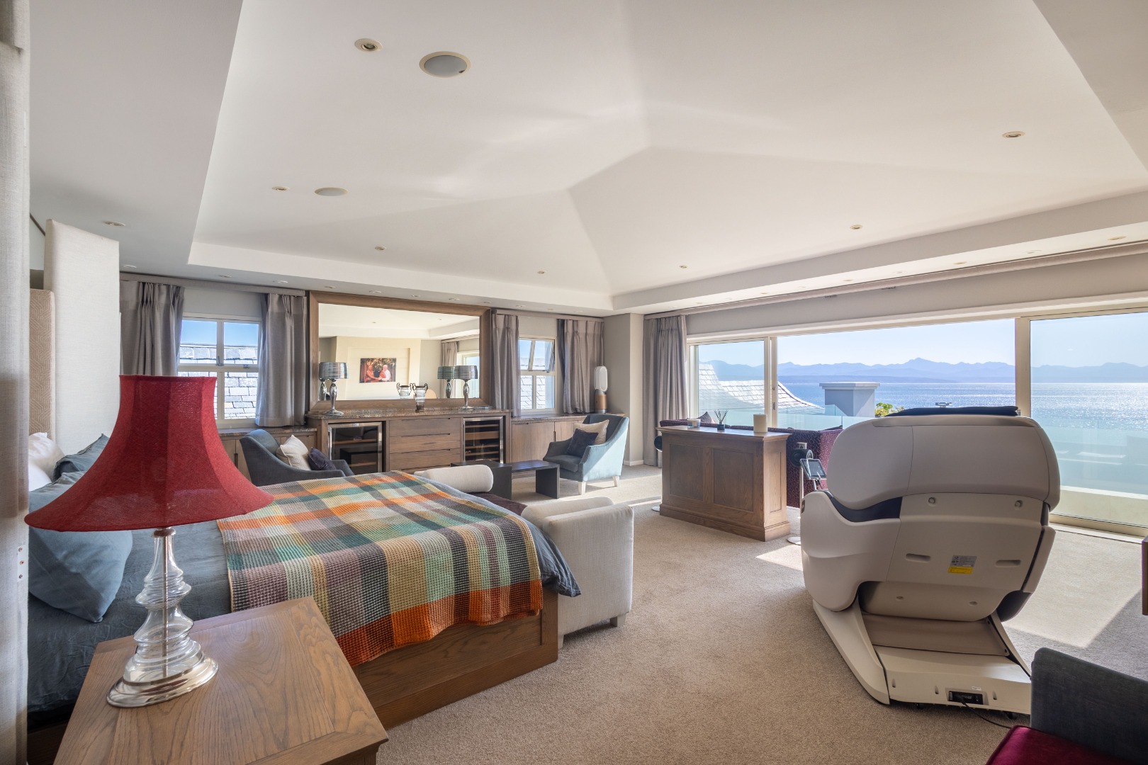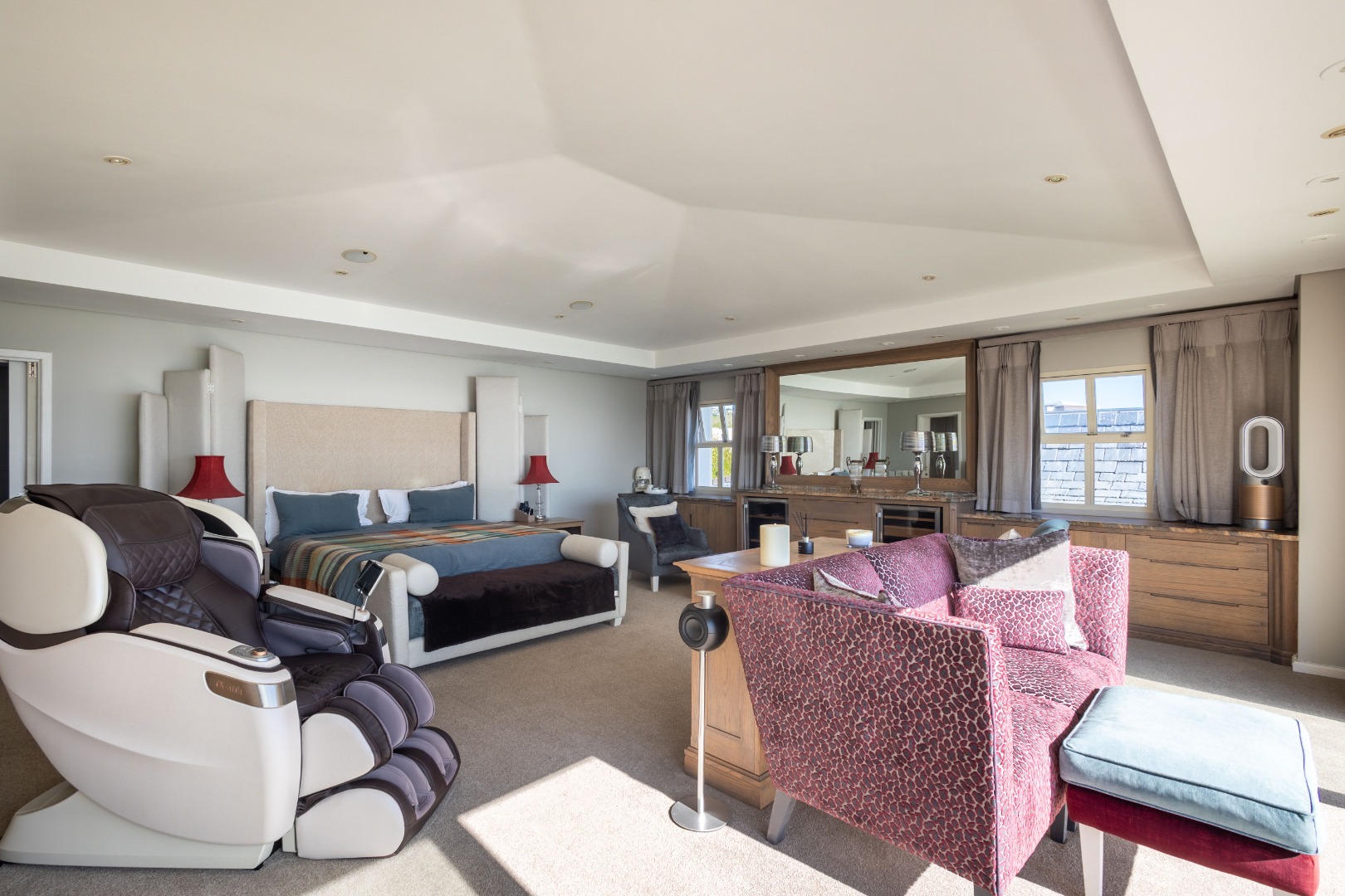 The main suite is a private sanctuary, very spacious with a King size bed, Smart TV that can drop down into its casing so your views from the bed are not obstructed.